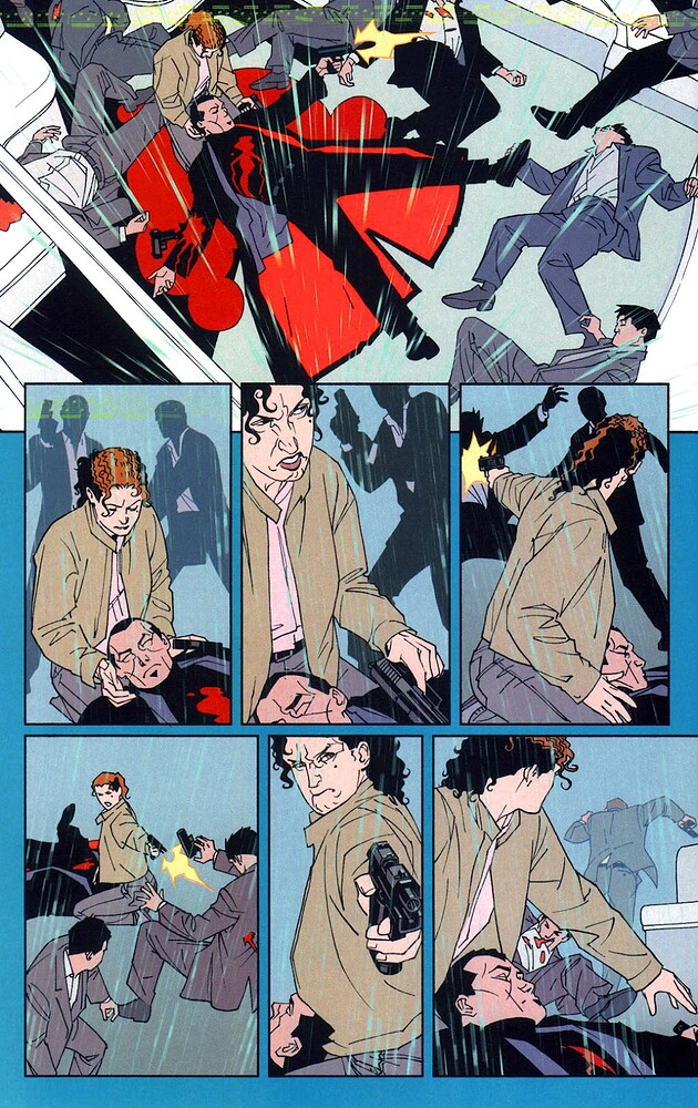 C’est dans ce cadre de prospérité éditoriale que paraît Matador #1, un nouveau polar signé Devin Grayson et Brian Stelfreeze. Les six épisodes paraîtront chez WildStorm, puis seront réédités chez Image en 2019, le temps pour les auteurs de récupérer les droits de leur série. Signe également que le label créé par Jim Lee a, entre-temps, cessé d’être un havre fertile pour les créateurs.