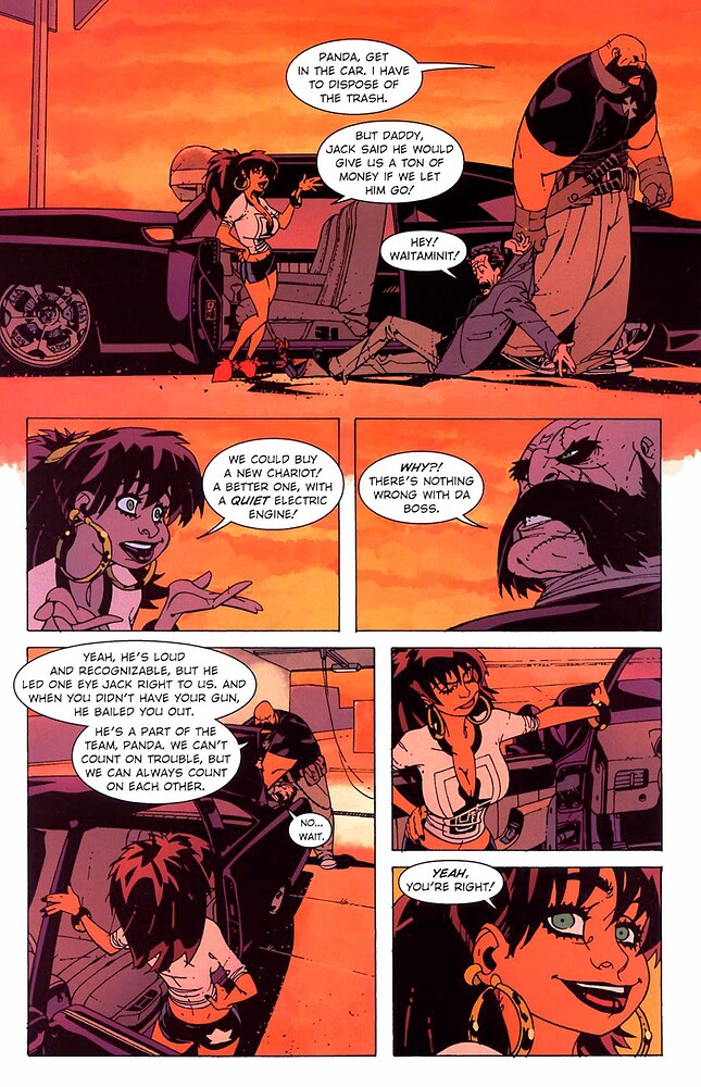 Entièrement consacré à Panda, le récit voit la jeune femme nettoyer la voiture de son père et discuter avec le détective Kurgle, à qui Pearson dessine la tronche de l’acteur Walton Goggins. Bien entendu, ça se passe assez mal pour le poseur de questions, on s’en doute.