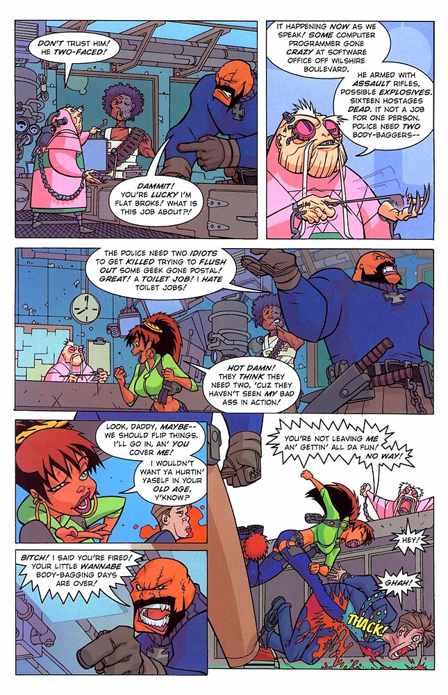 Mais il demeure que le récit est enlevé et puissant, parvenant à conserver son humour insolent et ses notes d’humanité. Le scénariste parvient à surprendre et à détourner l’attention du lecteur, et le dessinateur, qui mélange Katsuhiro Otomo et Paul Pope dans son trait, déploie une énergie communicative.