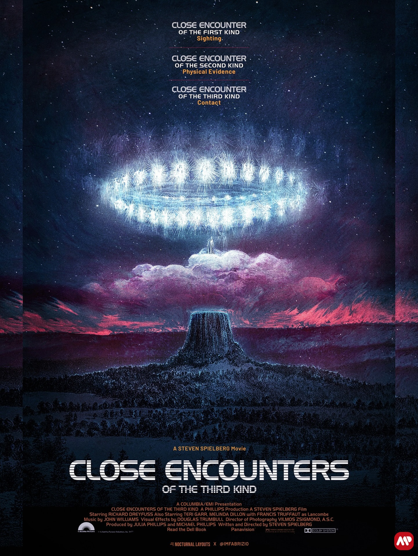 Steven Spielberg a débuté le développement de Rencontres du Troisième Type en 1973 après avoir terminé Sugarland Express, pensant en faire son film suivant avant de le repousser pour réaliser Les Dents de la Mer. Et c’est grâce au succès planétaire de Jaws qu’il a eu carte blanche pour mener son projet à bien. Si Steven Spielberg est le seul crédité au scénario de Rencontres du Troisième Type, plusieurs auteurs ont collaboré à l’histoire : Paul Schrader (qui n’avait pas encore écrit le Taxi Driver de Martin Scorsese), dont le script a fortement déplu à Spielberg; John Hill; Hal Barwood et Matthew Robbins (qui ont suggéré l’enlèvement de l’enfant comme tournant dramatique) ou encore Jerry Belson, avant que Spielberg signe le scénario définitif.