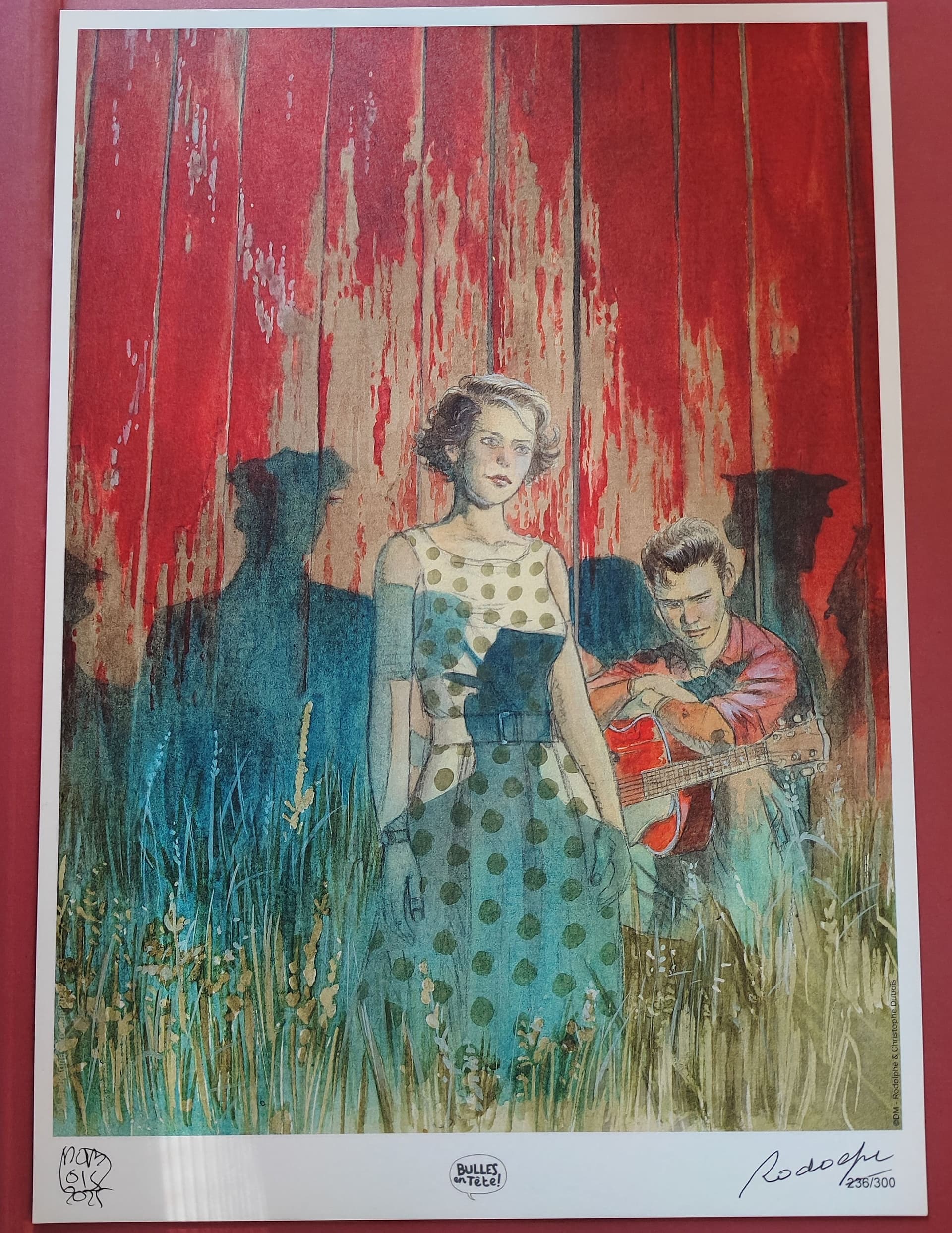 Dans Rockabilly, c’est la complexité des personnages et le contexte historique qui donne tout son sens au récit : Vers 1955, le blues, la country et le rock’n’roll font leur apparition et viennent illuminer la vie d’une génération de jeunes gens qui souffrent au quotidien. Dans les Appalaches, sur la côte Est des États-Unis, les red necks, c’est à dire les Blancs issus de la classe pauvre qui travaillent la terre sous le soleil, vivent dans la misère et ne jurent que par la Bible, la winchester et le bourbon ! Dans une époque où l’adolescence n’existe pas, les jeunes trouvent alors leur épanouissement dans la musique… Rockabilly illustre les déviances malsaines de cette famille prisonnière de sa condition. Un seul exutoire pour nos personnages Barbie et Hank, le rock’n’roll !