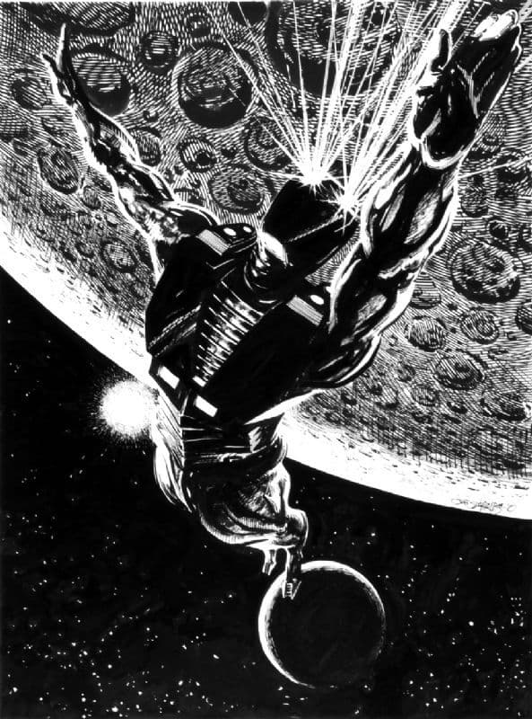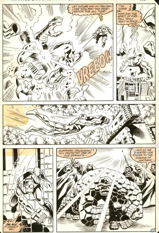 Bob Hall encré par Kevin Dzuban dans Marvel Two-in-One #99 (scénario de Bill Mantlo, bien sûr…) :