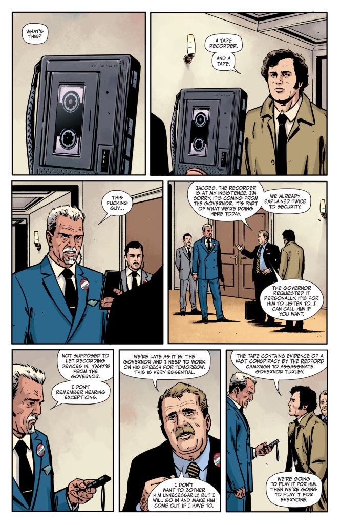 Who would have benefited from the assassination of a presidential candidate? Rorschach and Laura didn’t operate in a vacuum. Their actions touched a lot of different people. In his continued efforts to unravel how the pair got from their stark beginnings to almost killing Governor Turley and derailing an election, the detective on the case starts to look at what other law enforcement agencies have uncovered, and any potential links back to the Oval Office. To do that, it’s time to relive the crime that almost was.