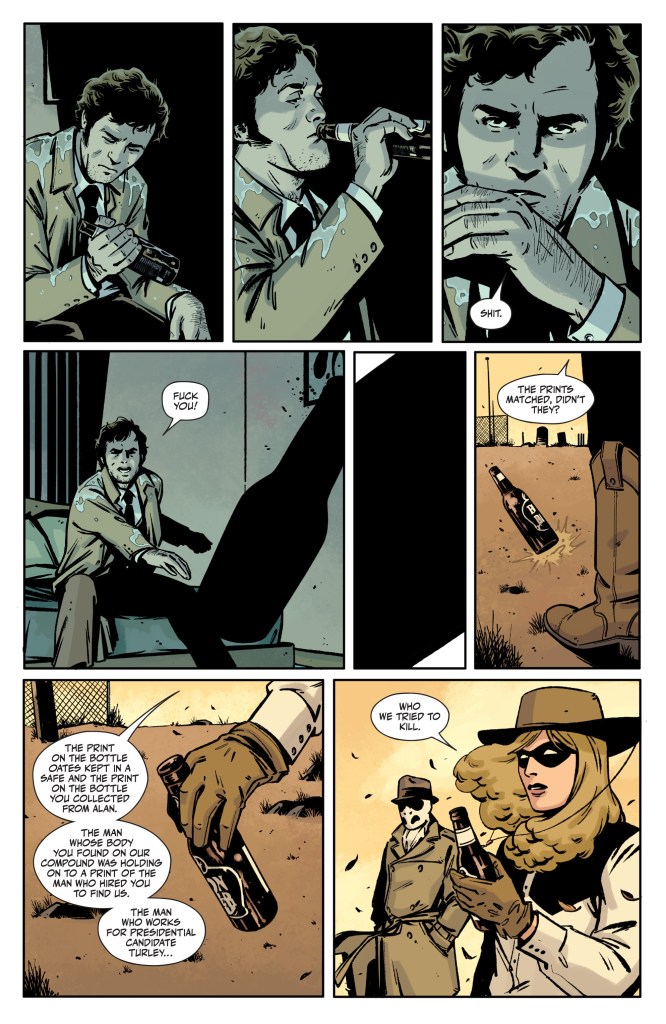 Et le tout continue de prendre sous fond presque invisible de Watchmen et magnifiquement dessiné par Jorge Fornès.