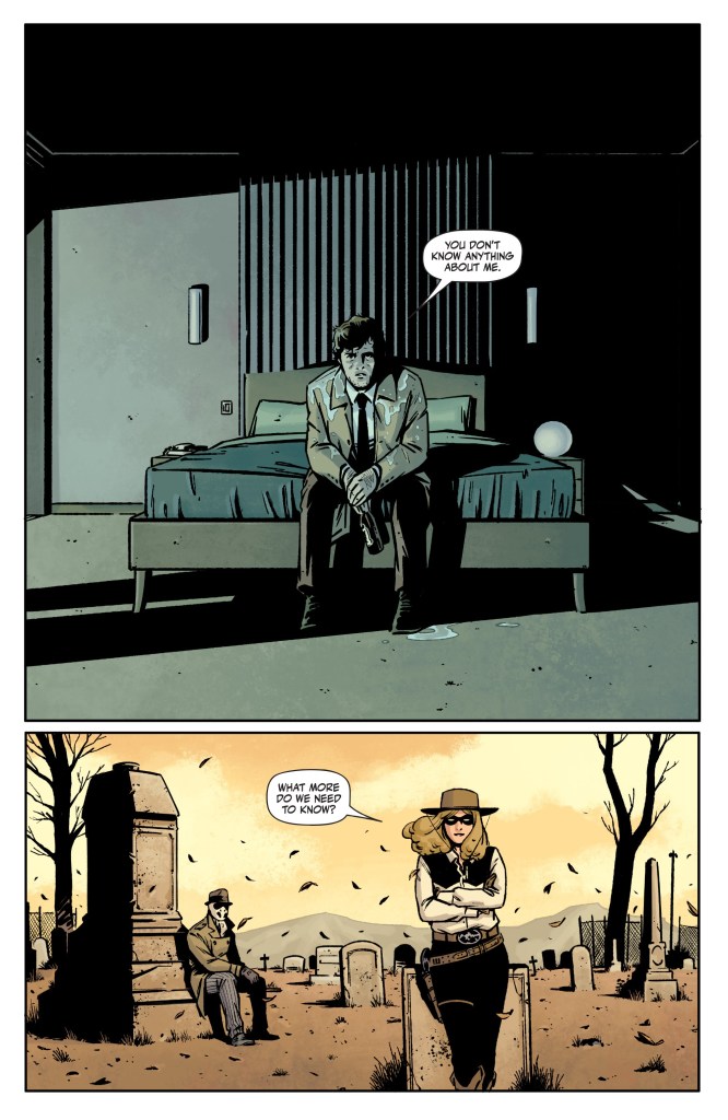The detective has found where the source of this tragedy began. Where Laura learned to shoot, a place where she not only learned to kill but also has killed, and where she brought Rorschach to turn him into an assassin as well. As the timelines crisscross, the man trying to undo this mess only falls deeper into it.