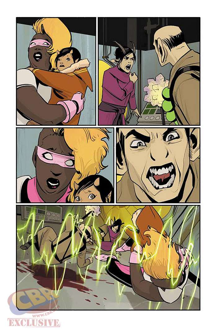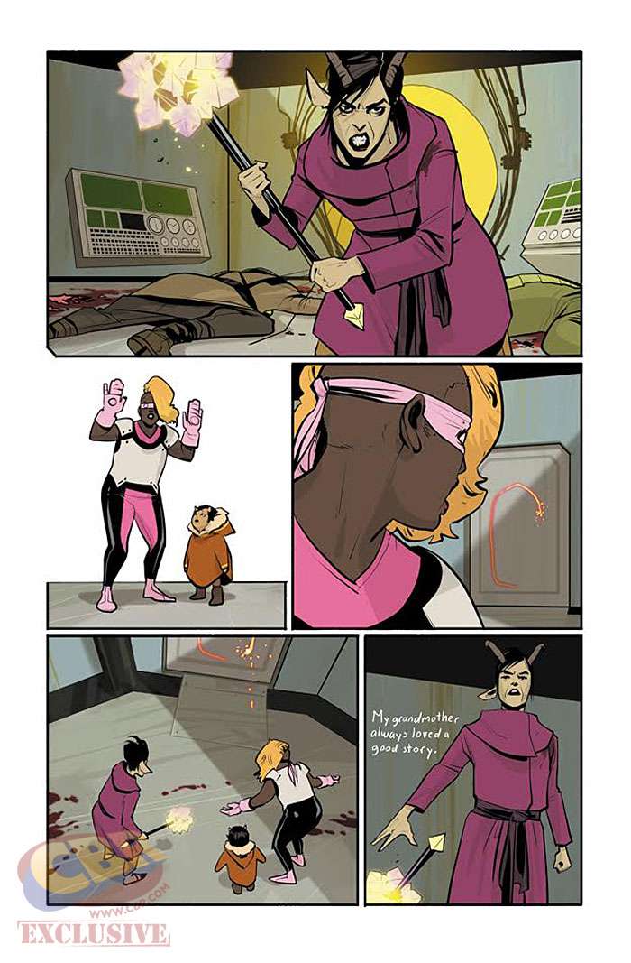 [quote=« Fiona Staples »]Brian knows I have a soft spot for Gale and I think he put him in tiny athletic shorts to indulge me. Most of this came from the script, actually- down to the headband and tearaway shirt, which has the logo of some alien band. Apparently Gale and Izabel have the same taste in music?
