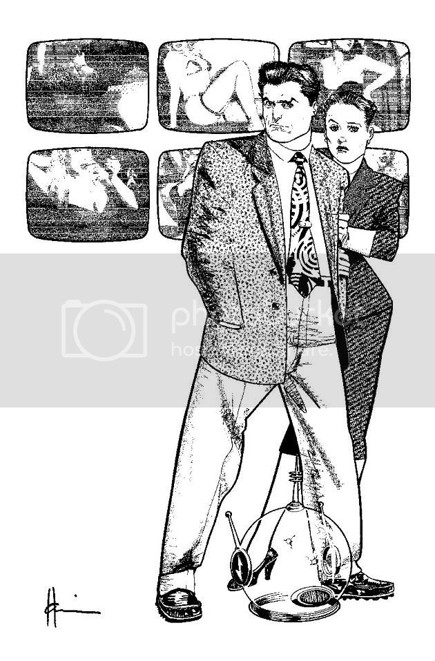 Bon, le feuilletage du premier numéro est trèèèèèèèèès convaincant : du grand Chaykin, super ambiancé, très maniéré, très matiéré aussi, avec un trait ferme et clair. Quelques mentons forts et mâchoires prognathes, mais vraiment rien de rédhibitoire. Du Chaykin en pleine forme. Une intrigue complexe avec plein de personnages (à vue de nez, j’ai pas encore lu en détail) et Ken Bruzenak, le lettreur, qui revient aux affaires : toujours aussi lisible, mais en mode « je fais des expériences ». Cela donne un bullage pas cerné, qui joue sur les contrastes avec le fond de l’image (un peu comme Lloyd pour V for Vendetta, si je peux me permettre une comparaison). Bref, tout ce que j’aime dans Chaykin, mais avec une approche rajeunie.