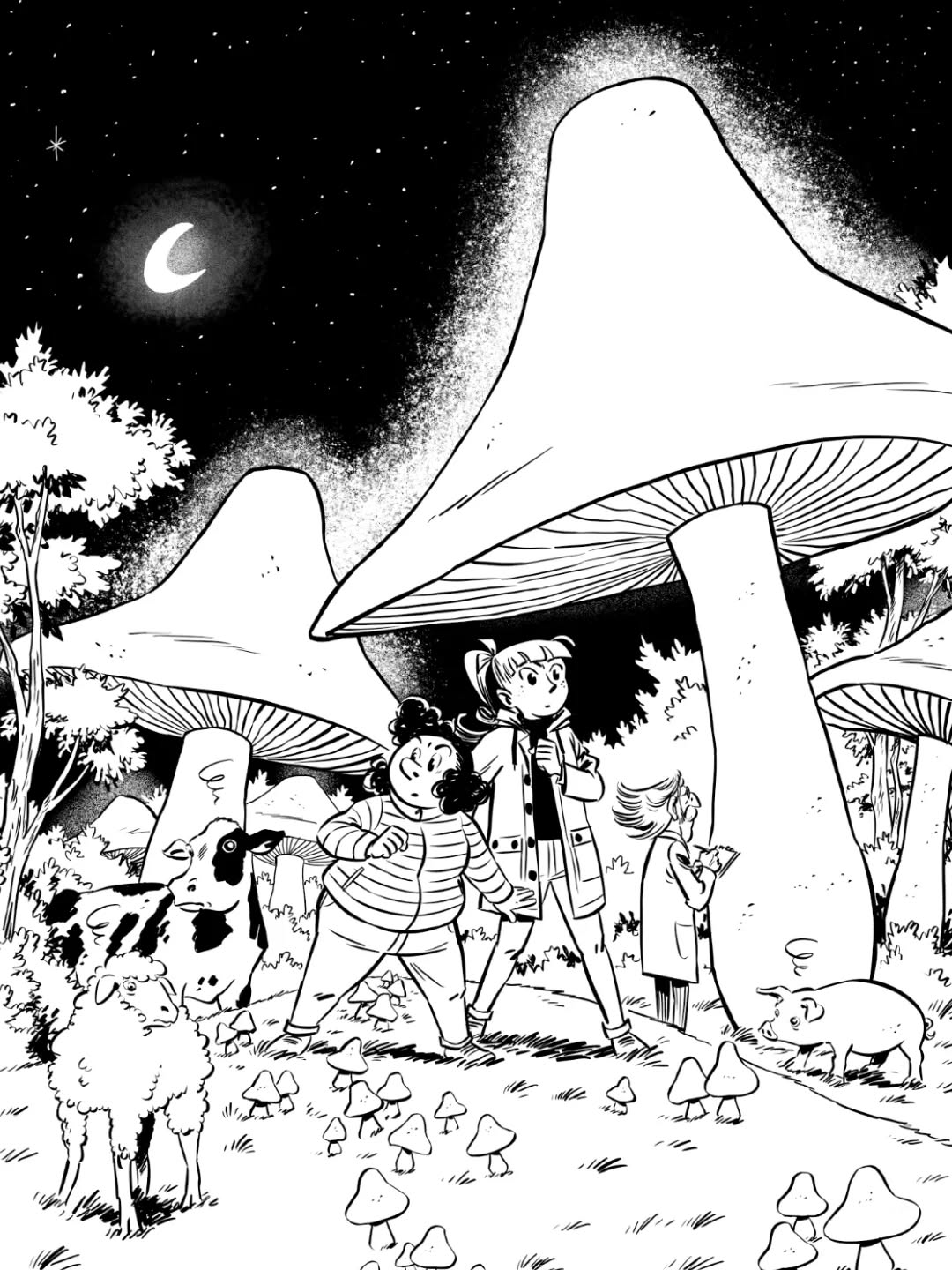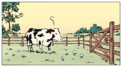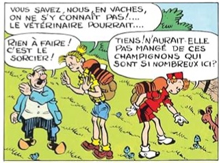 La vache et les champignons sont une référence à l’album Il y a un sorcier à Champignac (d’où provient la deuxième case).