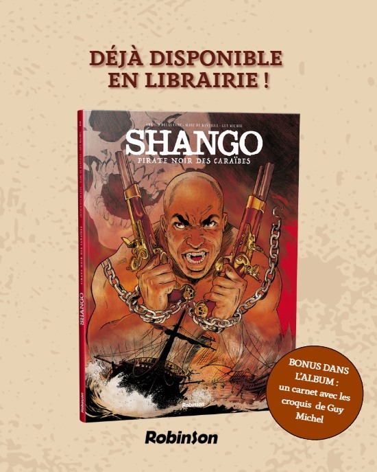Embarquez pour l’Afrique et les Caraïbes avec Shango et découvrez une odyssée épique de piraterie sublimée par les superbes illustrations maritimes de Guy Michel.