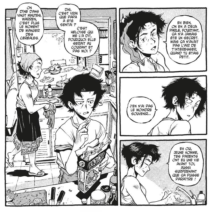 De ma fenêtre aussi (donc c’est une réflexion pas réellement approfondie), je suis davantage circonspect au sujet du format que du style. On sait tous par expérience que tenter de viser deux publics, c’est risqué, et que les différents publics identifient les projets en fonction du contenu, certes, mais aussi et surtout du format. En gros, je me dis que les lecteurs habitués aux grands albums toilés qu’Arno décrit plus haut pourraient être échaudés par ce format manga qui, peut-être, ne correspond pas à leurs habitudes ni à leurs attentes, et ne pas suivre les auteurs dans cette aventure (là où un changement de style dans le même format me semble moins risqué).