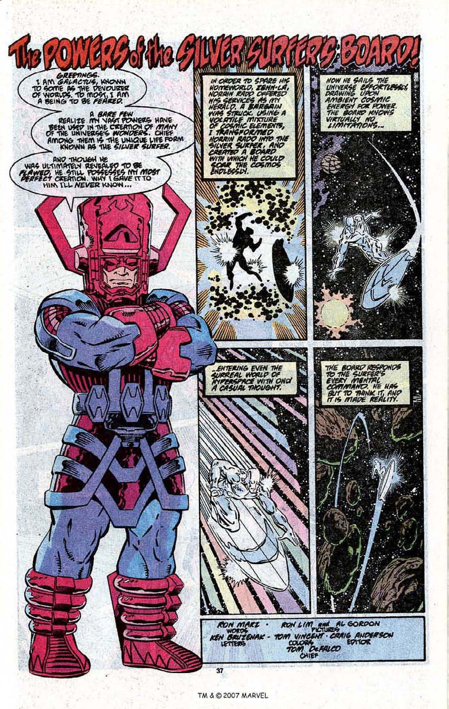 Lorsque Stan Lee découvre les pages du début de la célèbre « Galactus Trilogy » dans Fantastic Four #48, il est agréablement surpris par la présence inattendue de ce mystérieux surfeur argenté slalomant entre les météorites (une version confirmée plus tard par Roy Thomas, présent au moment de la découverte des planches par Lee).