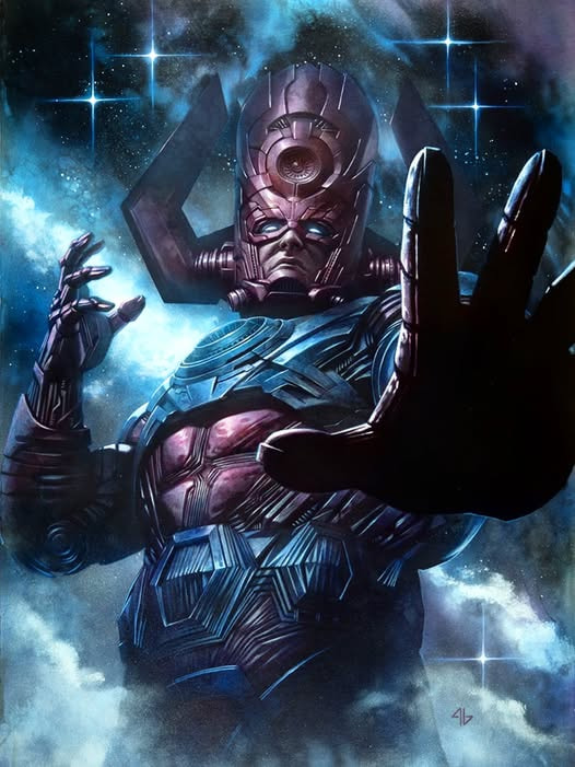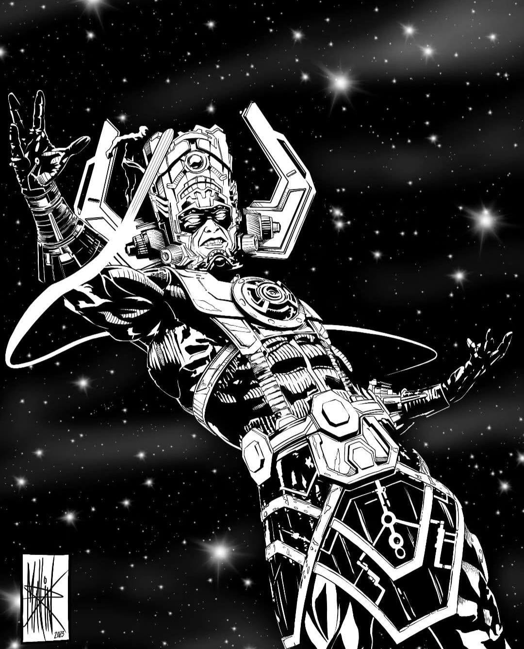 Le Surfeur d’Argent et Galactus par Martin-Olivier Dagenais