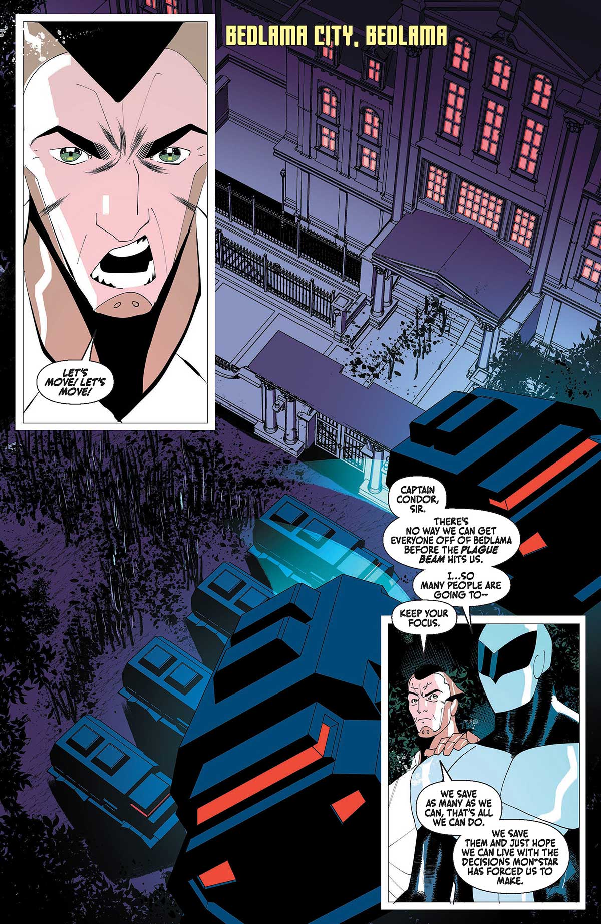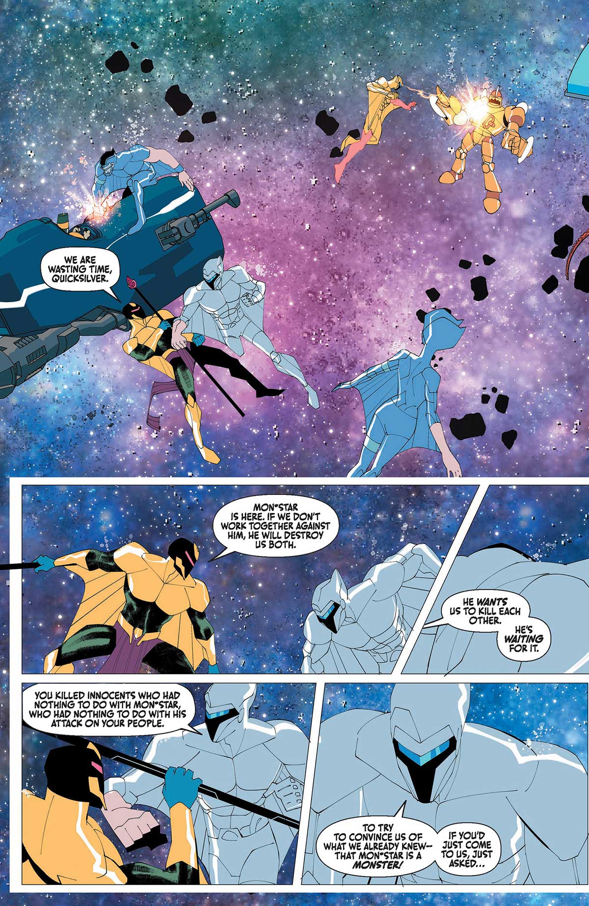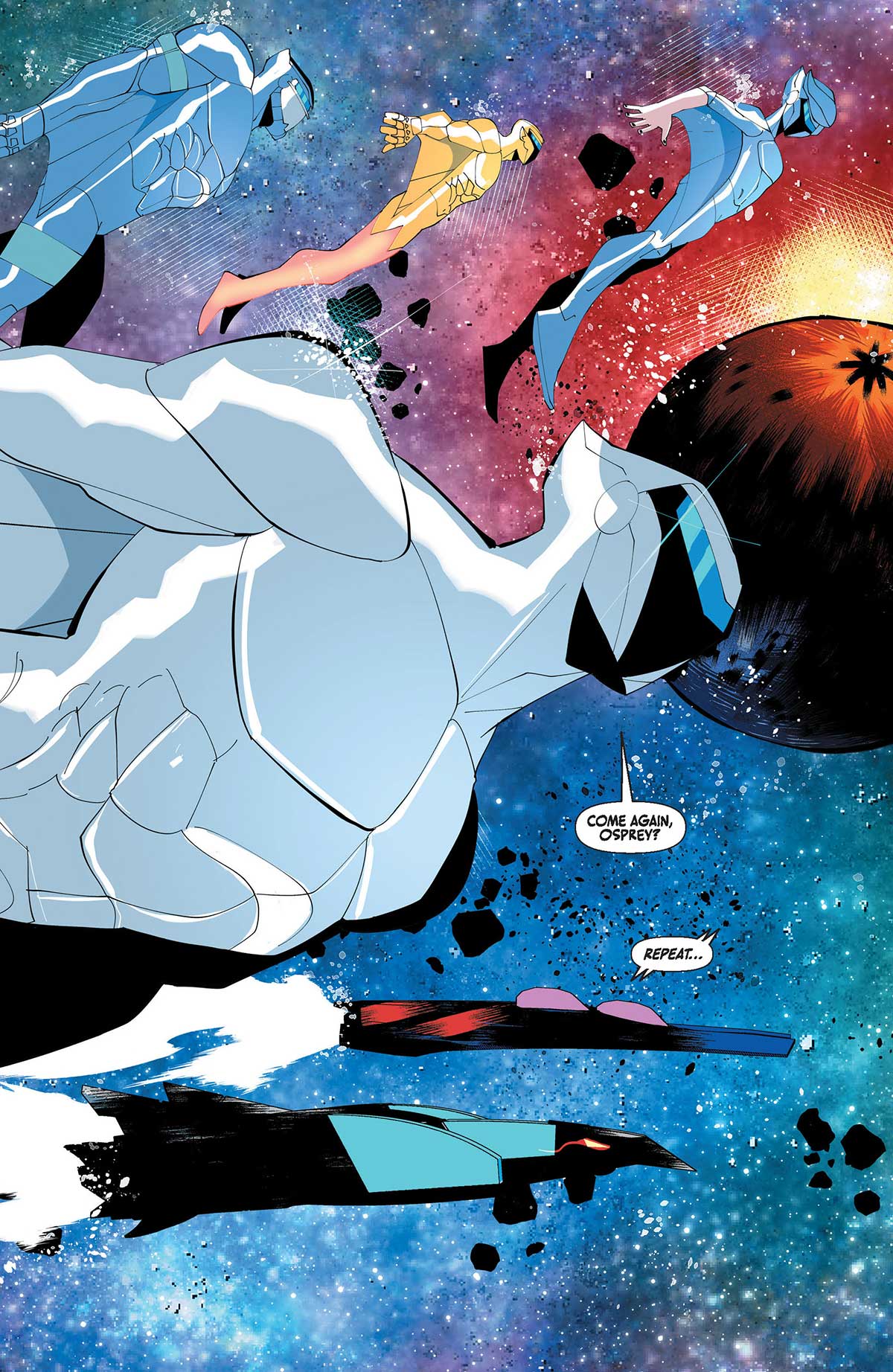 FRIENDS BECOME ENEMIES — AND ENEMIES BECOME ALLIES! With Hawk Haven in ruins and Stargazer, Copper Kidd, and Osprey lost in the wreckage, the remnants of the SilverHawks have no time to mourn — the Remnant is here, poised to destroy the entire Limbo Galaxy, and the team must fight alongside Mon*Star and his mob to have any hope of stopping it. But even if they manage to succeed, Stargazer’s nemesis isn’t going to let bygones be bygones — and the last trick he has up his sleeve could end the SilverHawks for good!