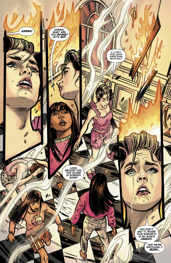 Cover price: $3,99Violet is back from the dead! But things aren’t so simple…her spirit is trapped within Sophie. With one goal in mind—take down the sorority responsible for her death—Violet pressures Sophie to attend their rush event. But what lengths will Violet go to get her revenge? And will Sophie always have her friend’s back? Their sisterhood is put to the test…in blood.