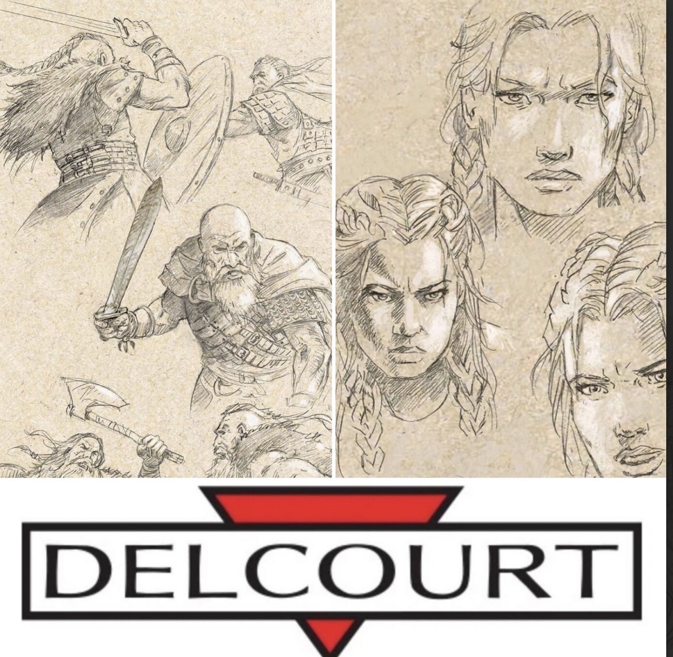 C’est avec grand plaisir qu’Eric Chabbert (au dessin) et moi-même (au scénario) vous annonçons une nouvelle série à venir aux éditions Delcourt, dans la célèbre collection Terres de Légendes, en compagnie de notre éditeur Grégoire Séguin ! Il y sera question de scandinavie médiévale (oui, les « Vikings » pour faire court) avec des aspects historiques rarement abordés mais aussi une bonne dose de fantasy inspirée par la mythologie de ces peuples nordiques au panthéon tellement varié. On y parlera d’un certain Snorri, c’est ainsi que pour l’instant nous nommerons le projet. Quelques recherches de personnages pour illustrer cette annonce ! A bientôt ou…sees snart !
