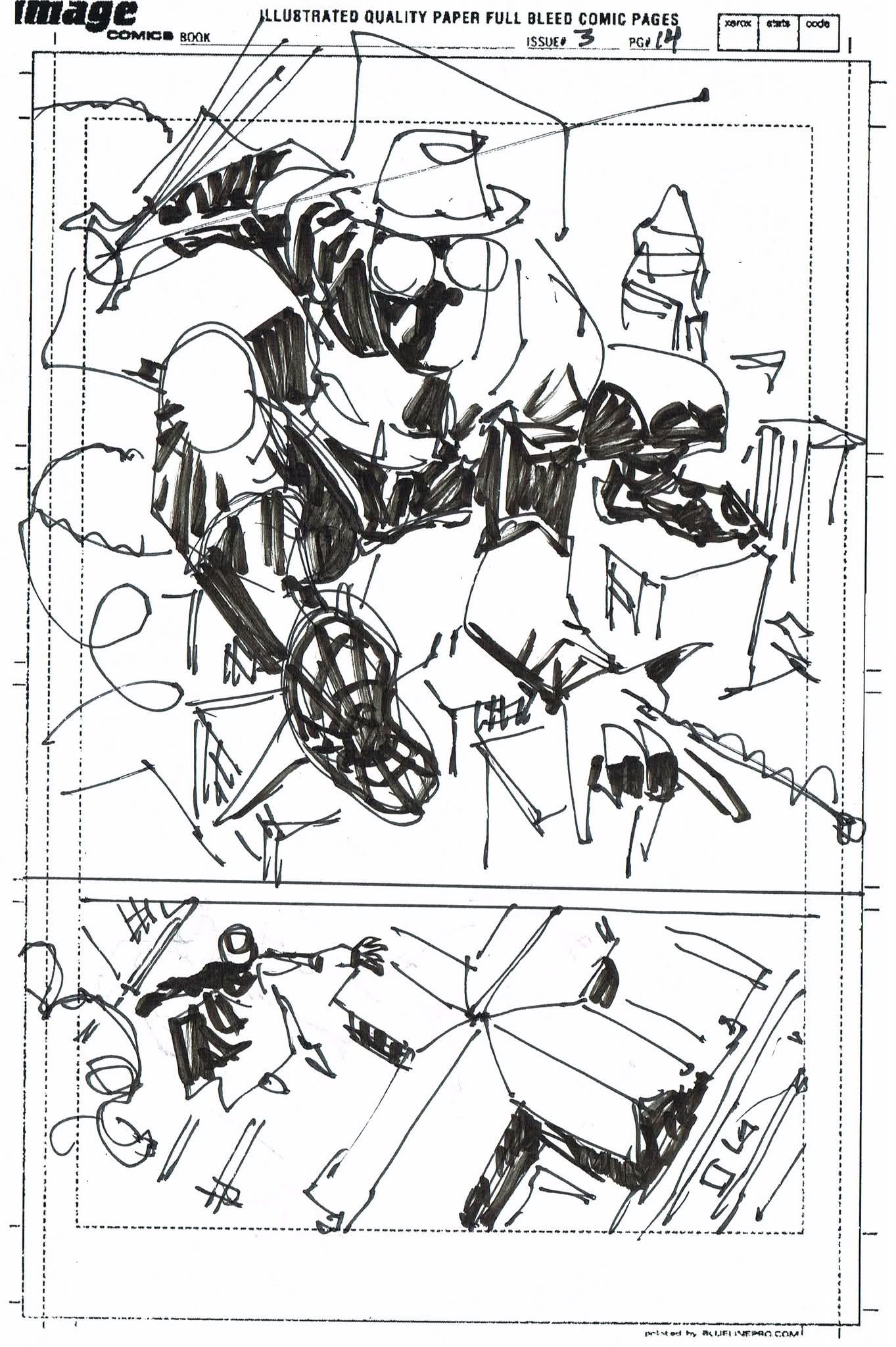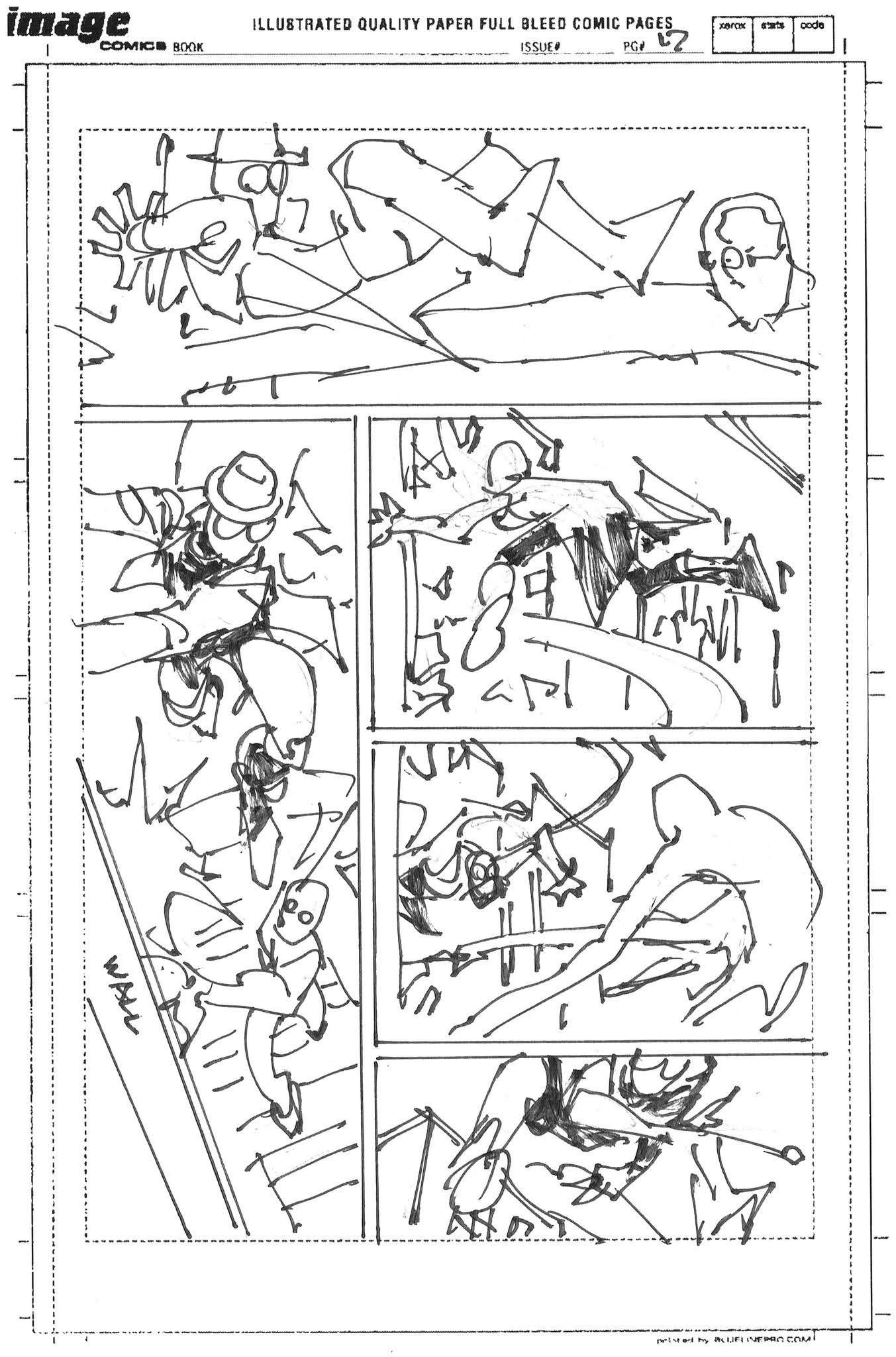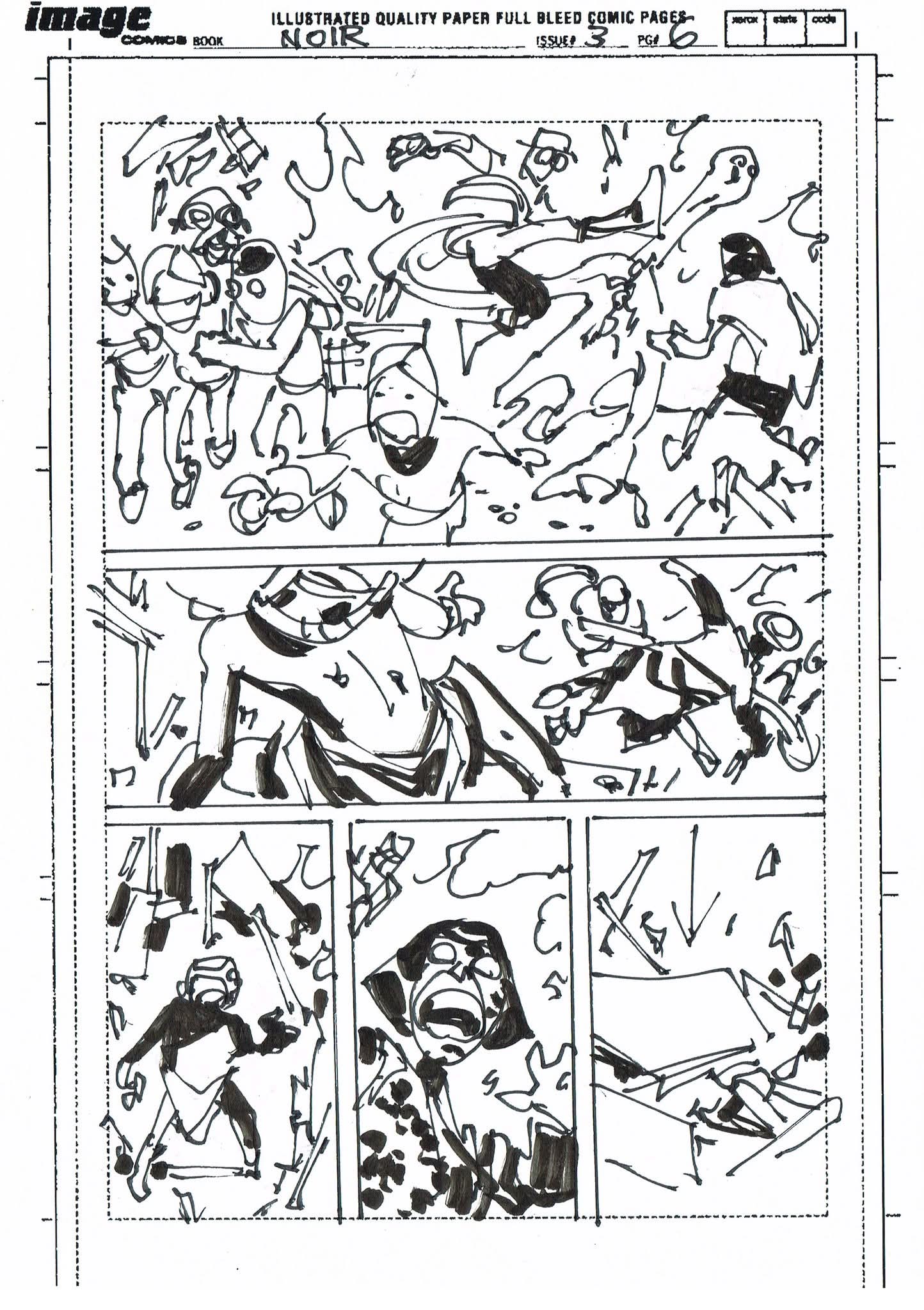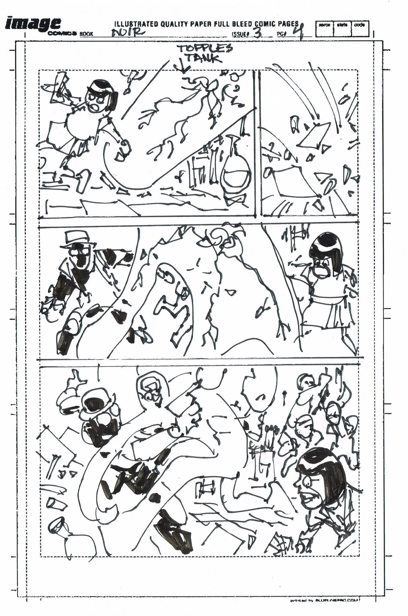 The artist that filled in on Spider-Man Noir #3 had never worked from a plot before and I was asked to draw thumbnails for my story. I sent in the first 10 pages to get them started but they went ahead and laid out the rest before I could get the second batch to them. I’m sharing them all with you. (SPOILERS to those who haven’t read the third issue)