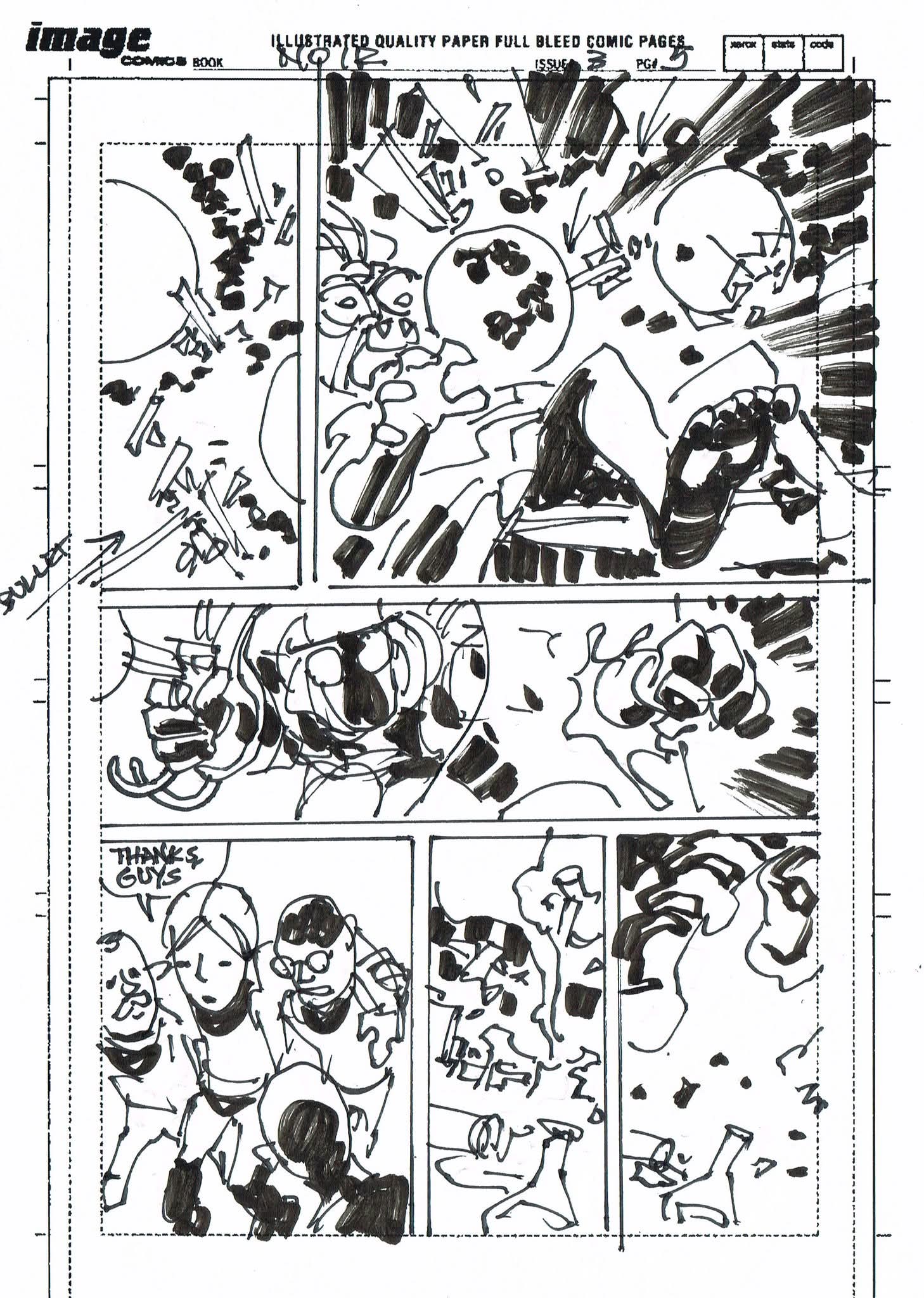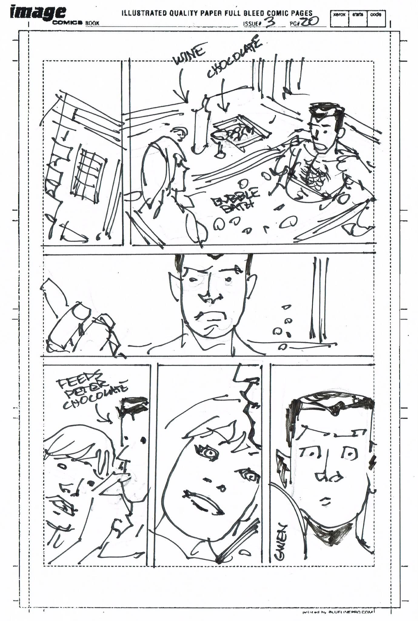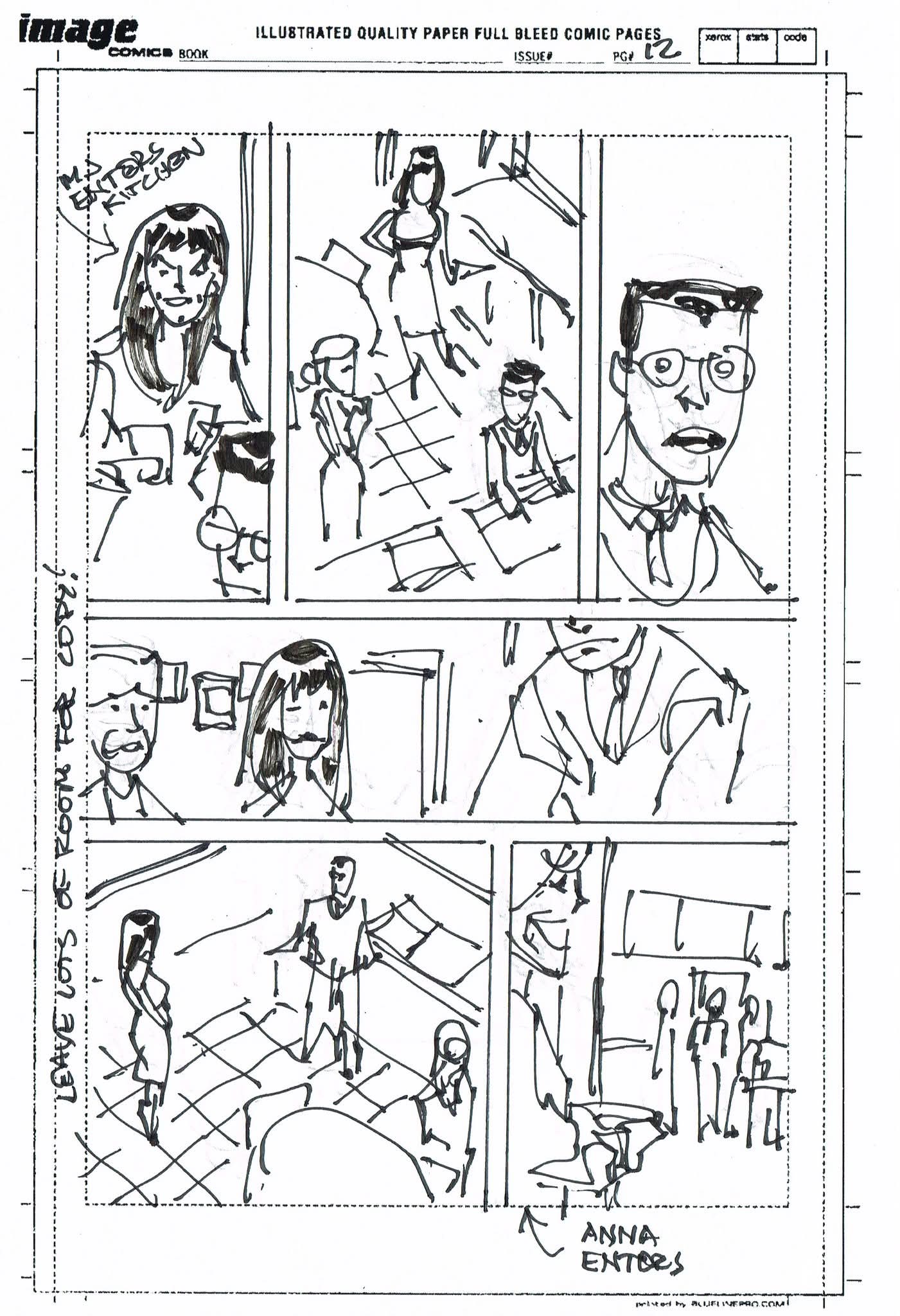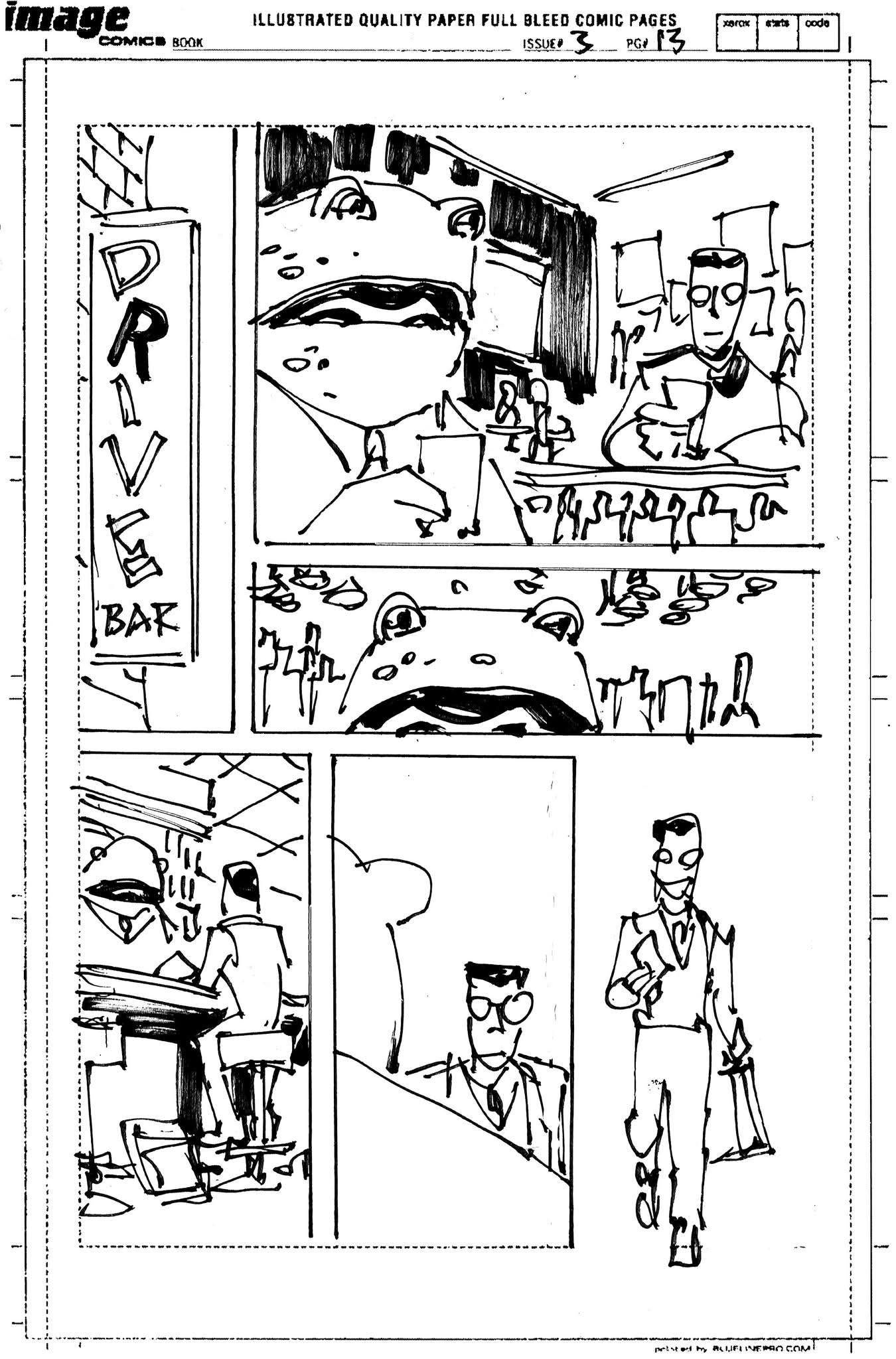 The artist that filled in on Spider-Man Noir #3 had never worked from a plot before and I was asked to draw thumbnails for my story. I sent in the first 10 pages to get them started but they went ahead and laid out the rest before I could get the second batch to them. I’m sharing them all with you. (SPOILERS to those who haven’t read the third issue)