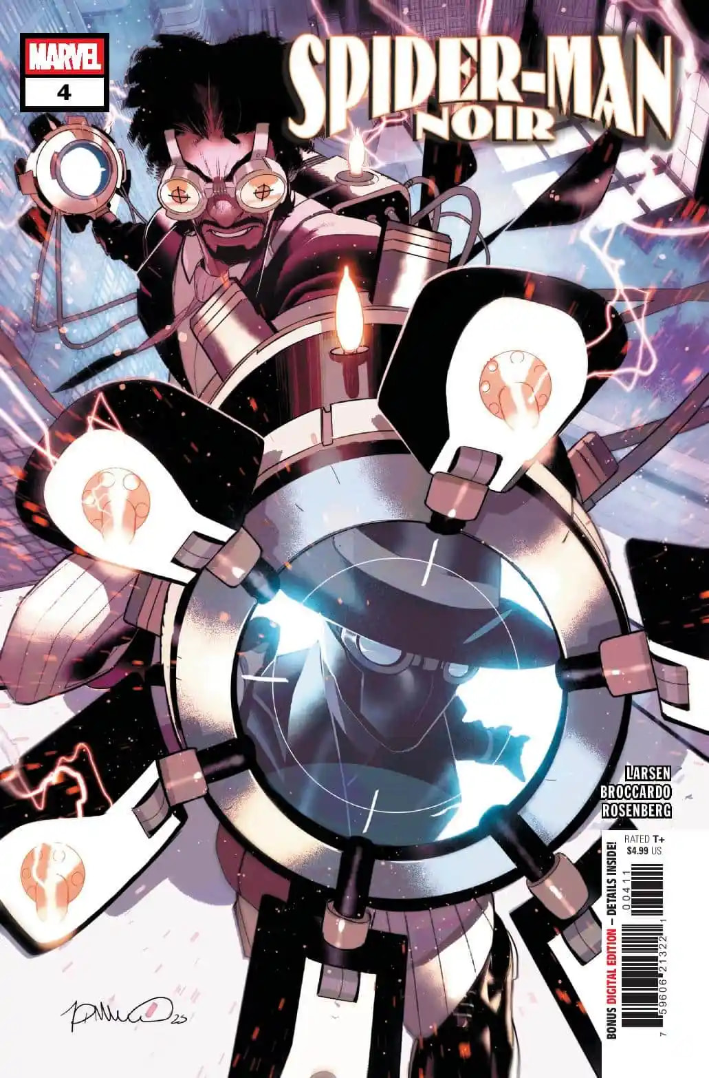 HAUNTED! Gwen Stacy takes the investigation of her father’s death into her own hands — and sets out to unmask Spider-Man! Meanwhile, Spider-Man Noir’s got another new rogue on his hands — meet PLASMA-MAN!