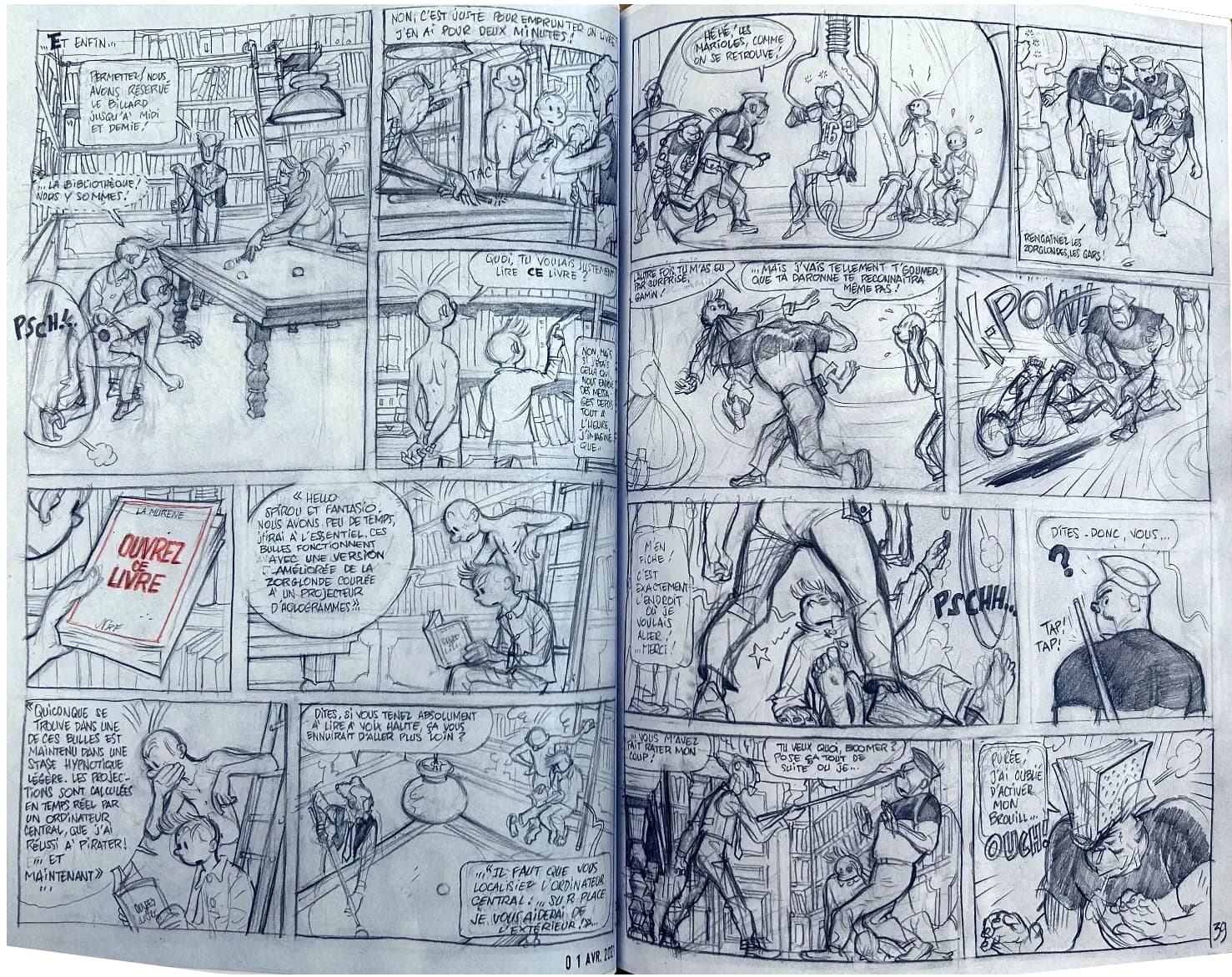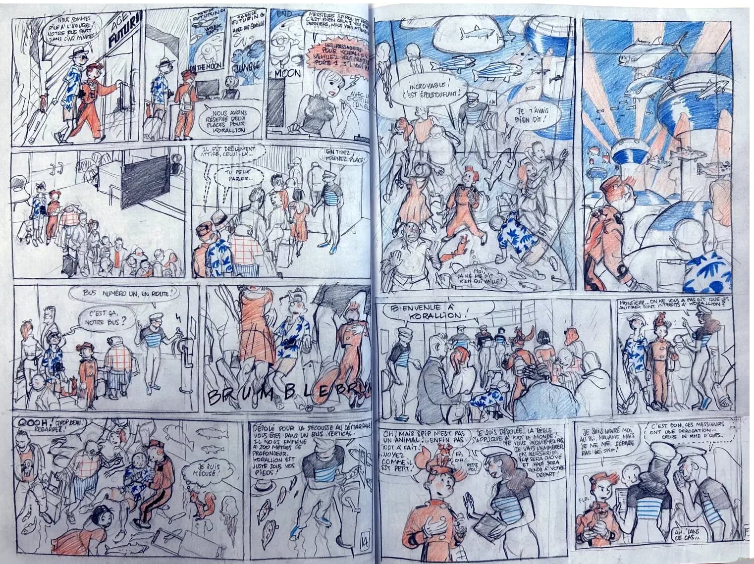 Alors qu’on pensait Spirou perdu à tout jamais, enseveli sous les eaux, le groom se réveille en 1958, au beau milieu de Spirou et les hommes-bulles, après avoir été assommé dans le salon d’Herbert D’Oups. Dès lors, toutes les aventures vécues depuis sont des chimères et la cité sous-marine de Korallion-la-Ville-Bulle n’a jamais existé. Le voilà de retour dans son âge d’or, l’année de l’Exposition universelle de Bruxelles. On y présente le futur tel qu’on l’imagine à l’époque… Mais le futur, Spirou sait qu’il ne ressemblera pas à cela car lui, il l’a vu en rêve. Petit à petit, le doute s’installe en lui tandis que le comportement de Fantasio devient de plus en plus étrange. Bienvenue dans La Mémoire du futur, la suite de La Mort de Spirou !