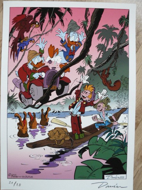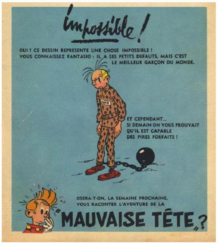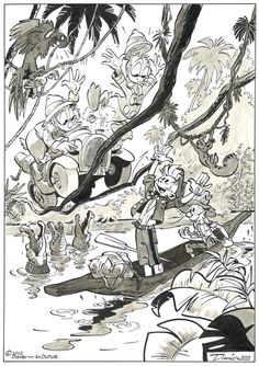 Après, les successions de calembours pourris laissent parfois l’impression qu’on lit du Yann, comme si Cauvin ne savait plus s’arrêter, et le dessin de Nic, qui fonctionne pas trop mal sur les personnages principaux parce qu’il singe Franquin ou Fournier, tombe dans la caricature dès lors qu’il dessine les protagonistes secondaires. Le résultat est une sorte de trait évoquant Berck ou Tabary, sans leur talent ni leur grâce. Ça donne un album qui se lit bien (et vite), mais qui reste un petit Spirou.