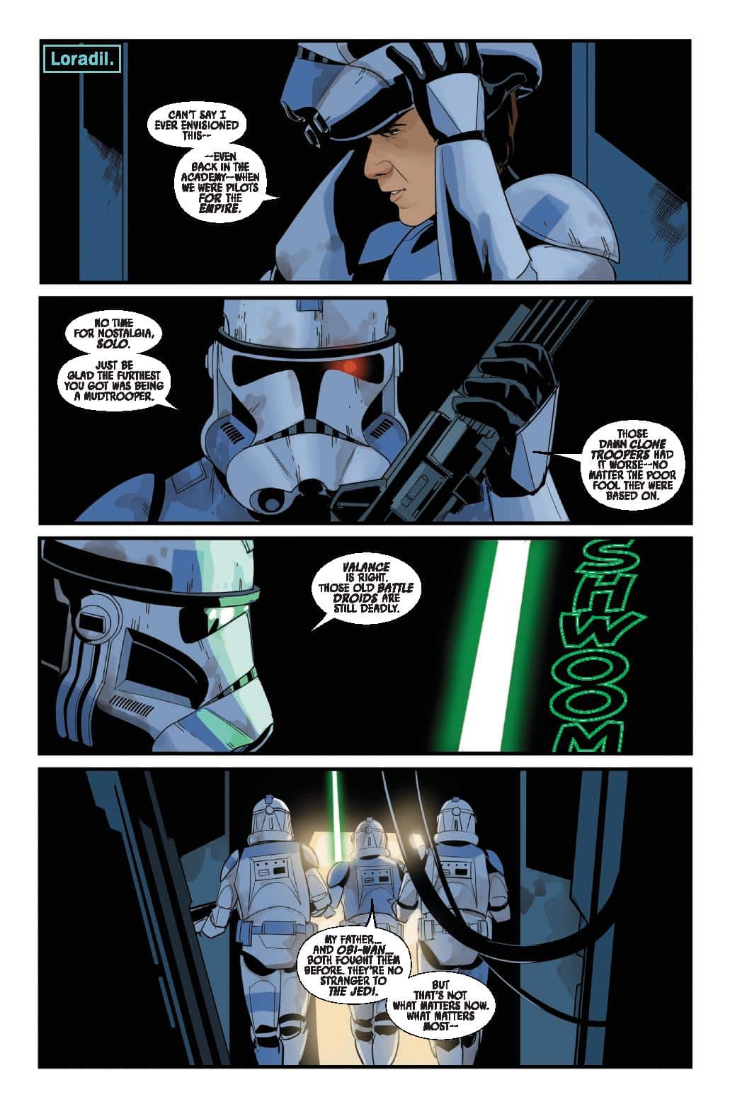 « I’ve been a giant Star Wars fan since A New Hope and have been lucky enough in the past decade to realize my childhood dream of drawing Star Wars as a job… Alex is an amazing writer and has come up with some great storylines and new characters for this series and I’m thrilled for the opportunity to bring them to life on the page! It’s also been exciting to draw the classic characters in the post-Return of the Jedi era because there’s no existing film or TV versions of them. I get to create new looks for them while also having reference of the actors from the 80s to help sell the look of this timeline » says Phil Noto.