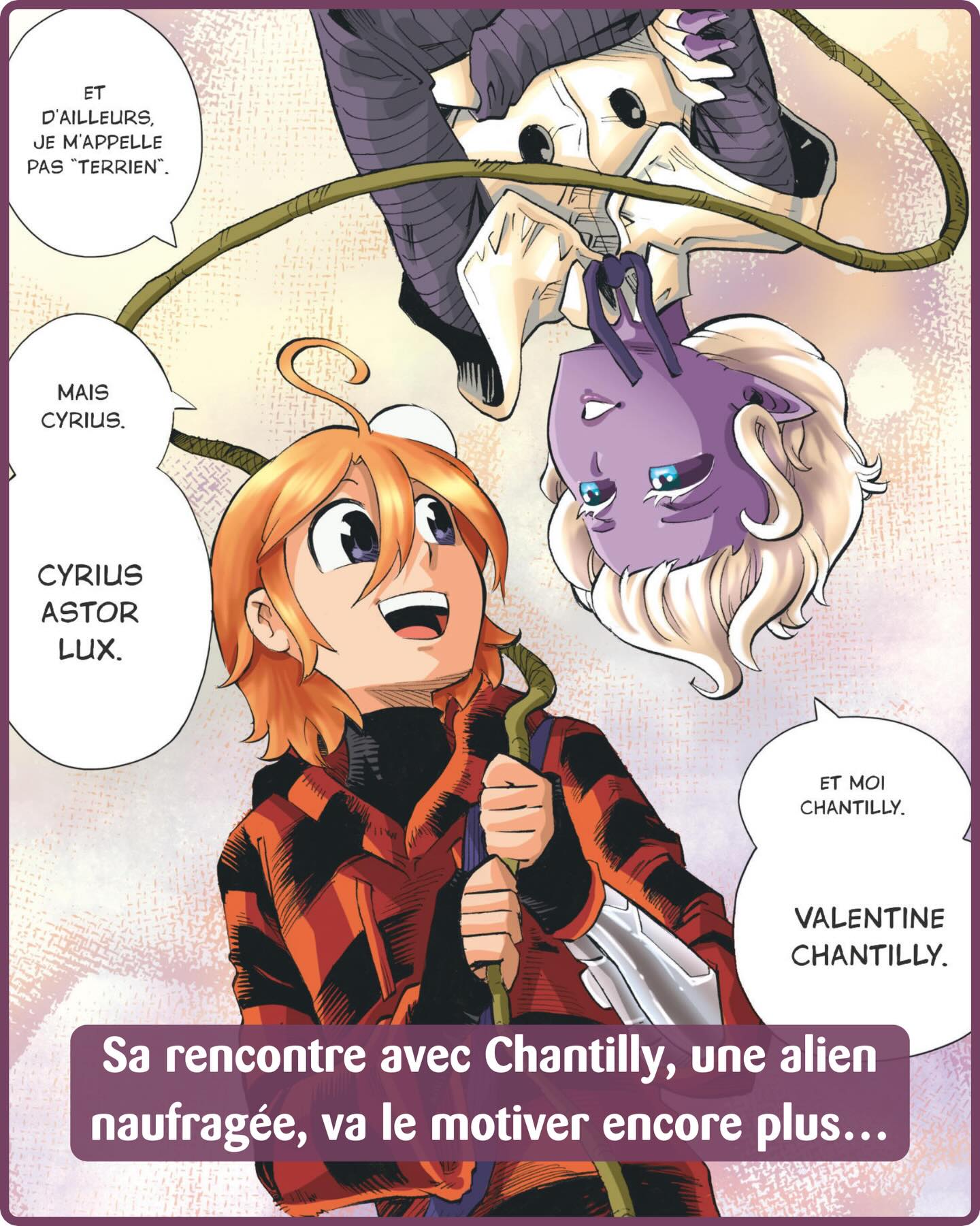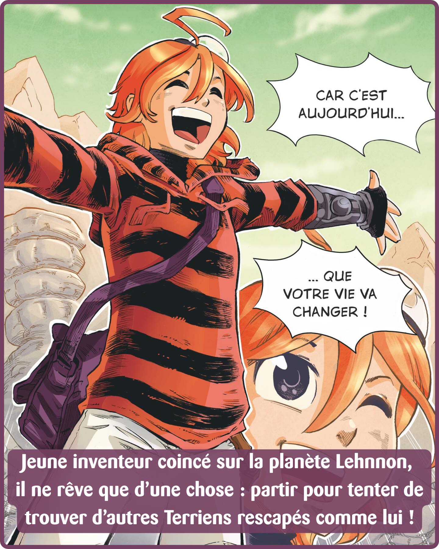 Plongez au fin fond de la galaxie et faites la rencontre de Cyrius, un jeune inventeur qui ne rêve que d’une chose : quitter la planète Lehnnon pour retrouver des Terriens rescapés de l’explosion de la Terre comme lui !