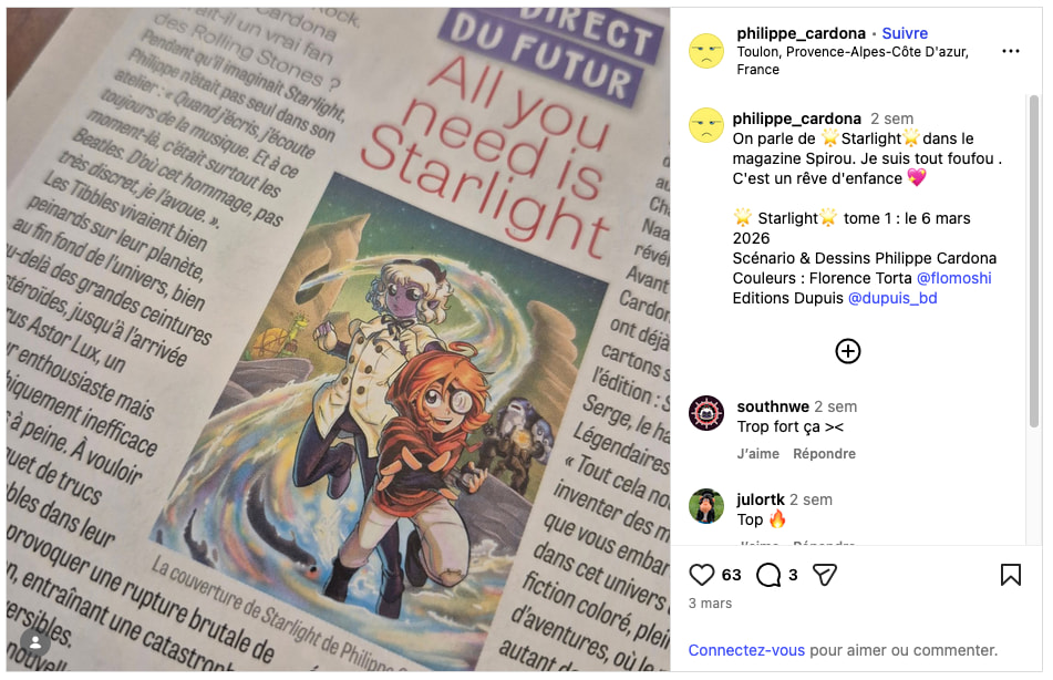 Sur le compte Facebook des Éditions Dupuis, le 16 mars 2026 :