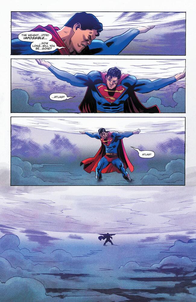 Il porte le monde, à plusieurs reprises : il soulève le globe du Daily Planet, il soutient l’île entière… C’est Atlas.