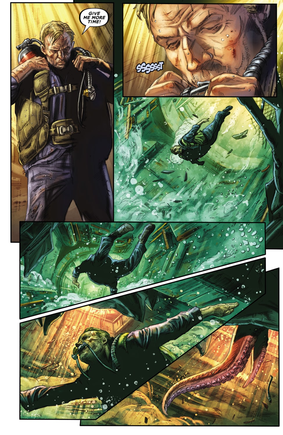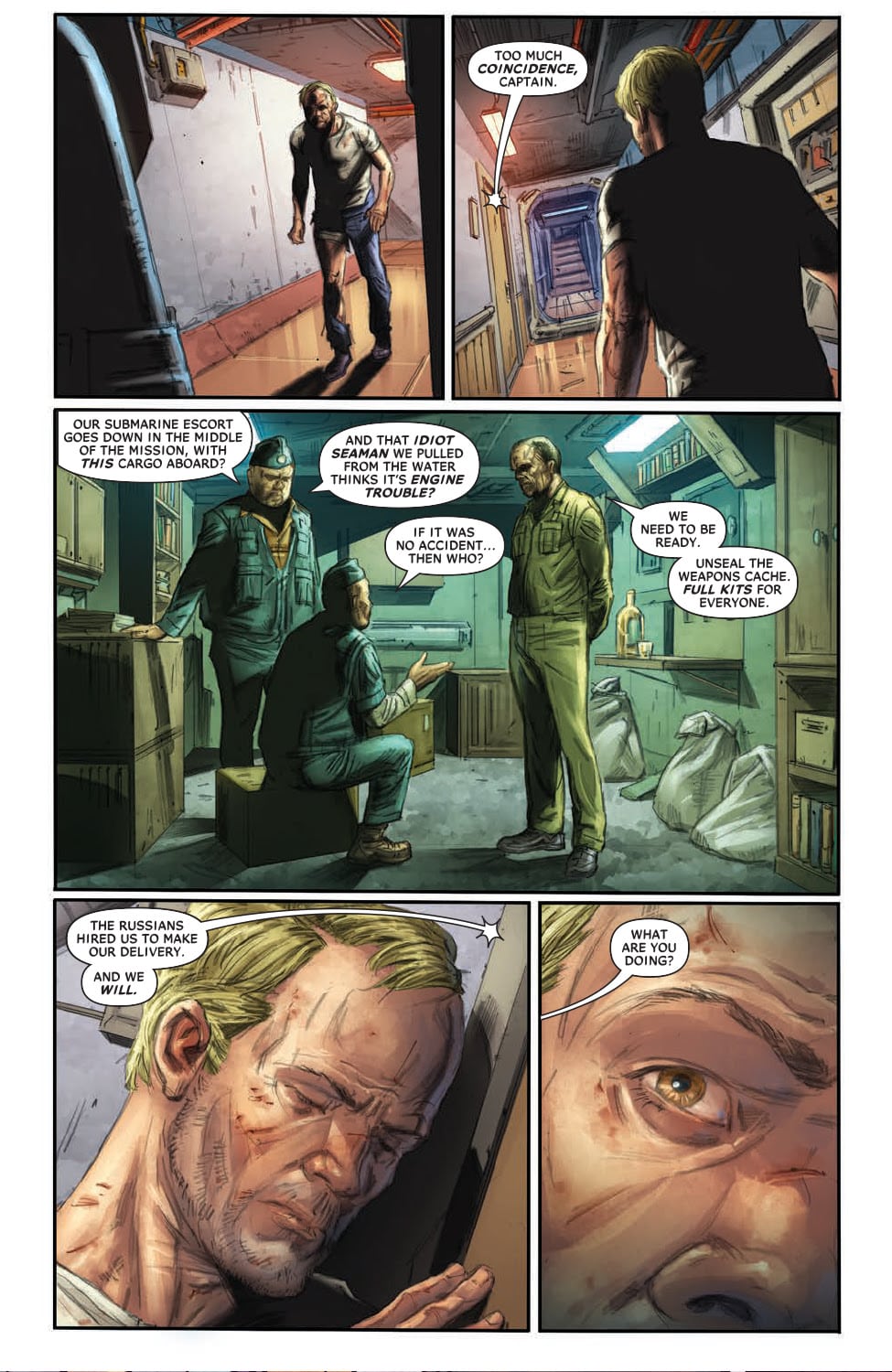 ON SALE OCTOBER 15TH, 2025FACE-OFF! After a hull-shattering explosion in the engine room, the Akula-class submarine is taking on water and sinking fast. Surrounded by the floating corpses of his dead comrades, Russian sailor Stepan has just one thing on his mind: vengeance. But the American operative responsible isn’t going down without a fight. Because only he knows the shocking secret of the Turgenev’s true mission, and the global war threatening to erupt on the surface. The brutal showdown begins here.