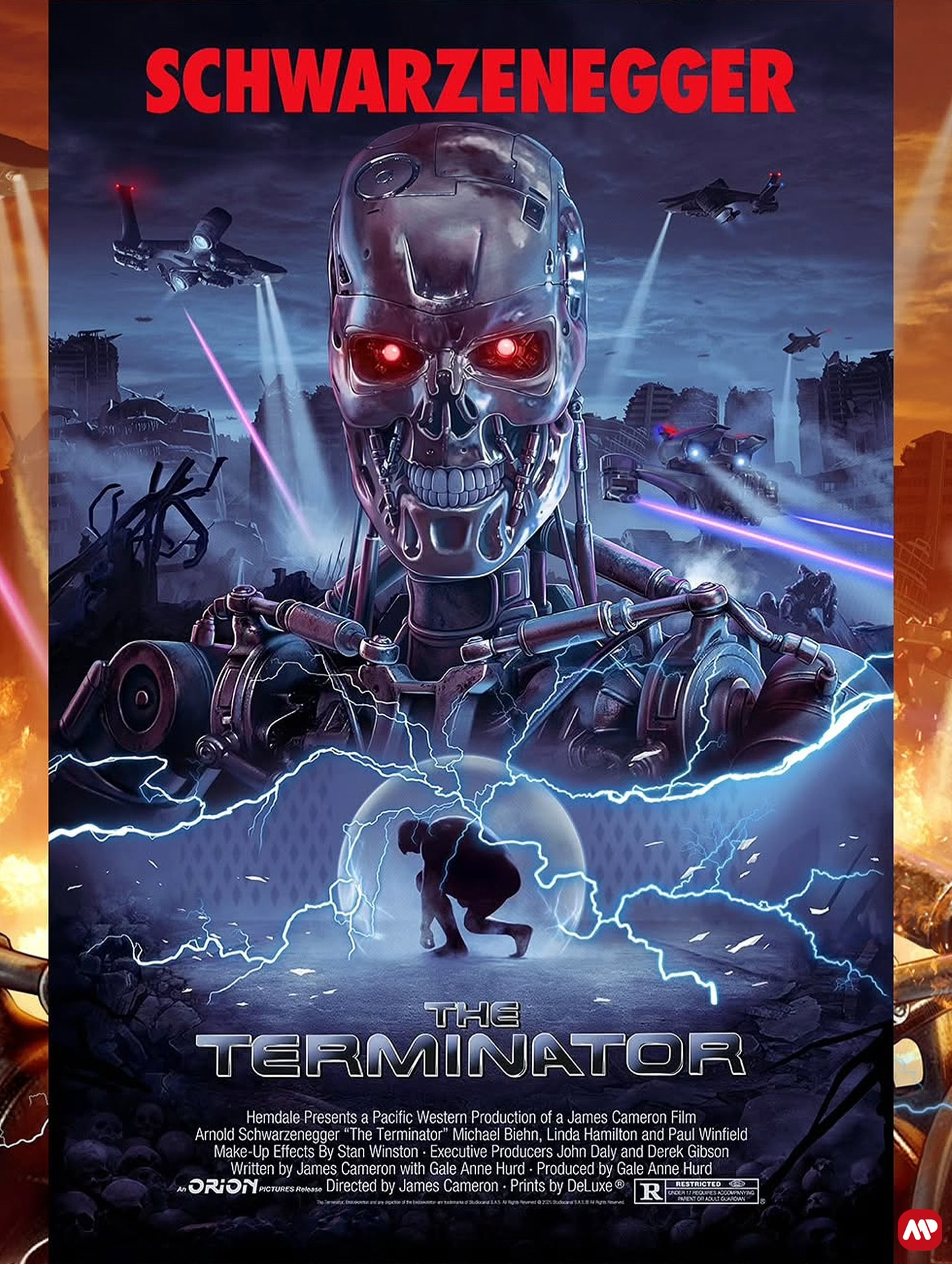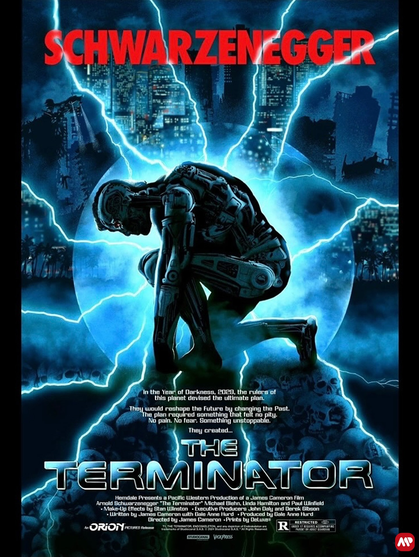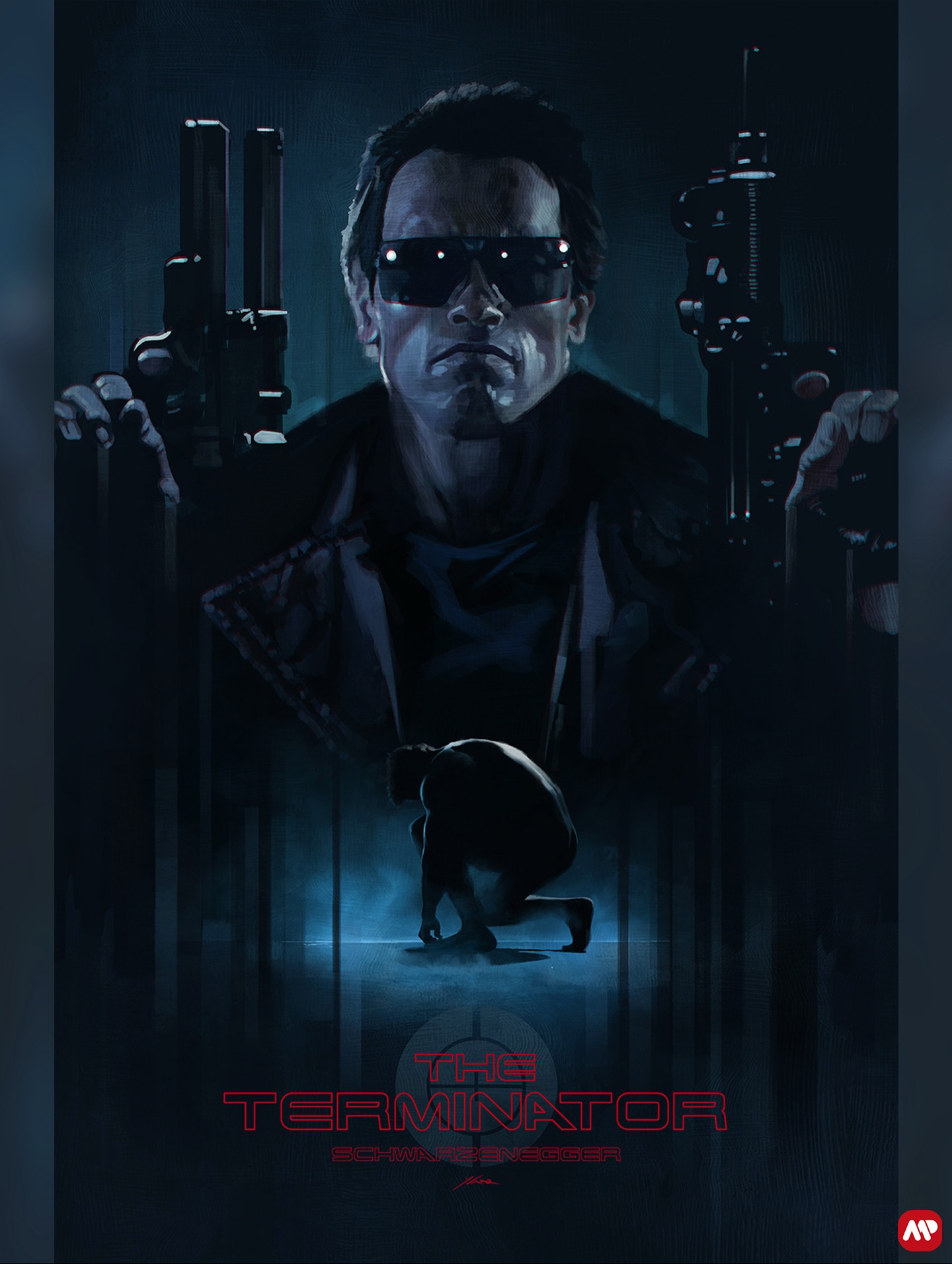 Le tout premier concept-art du Terminator, dessin signé James Cameron avec Lance Henriksen (que Cameron venait de diriger sur Piranha II) en modèle :