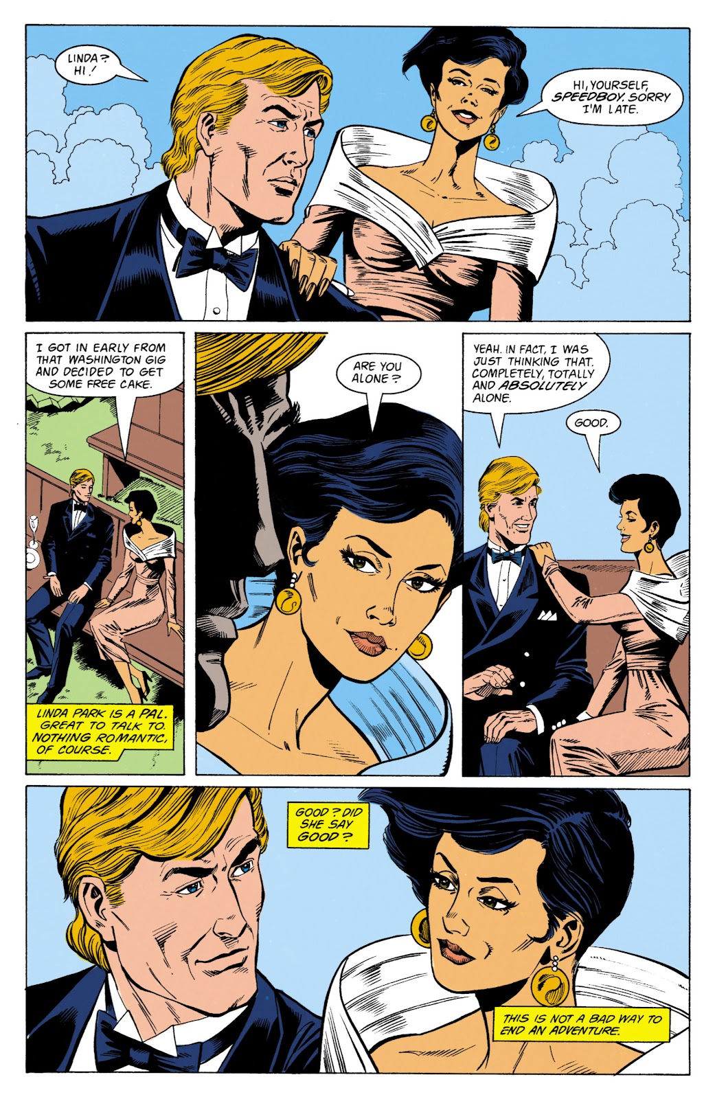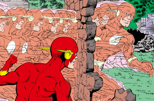 Quant à Waid, au moment où il reprend les affaires, c’est pour re-raconter les origines de Kid Flash avec l’arc « Born To Run » (petit hommage à Springsteen, on l’imagine), dans une logique de « réécriture/upgrade » ma foi assez courante à l’époque, chez DC bien sûr avec le reboot général post-Crisis, mais aussi chez Marvel (je pense à ce que Byrne fera au scénario sur « Iron Man » à peu près en même temps).