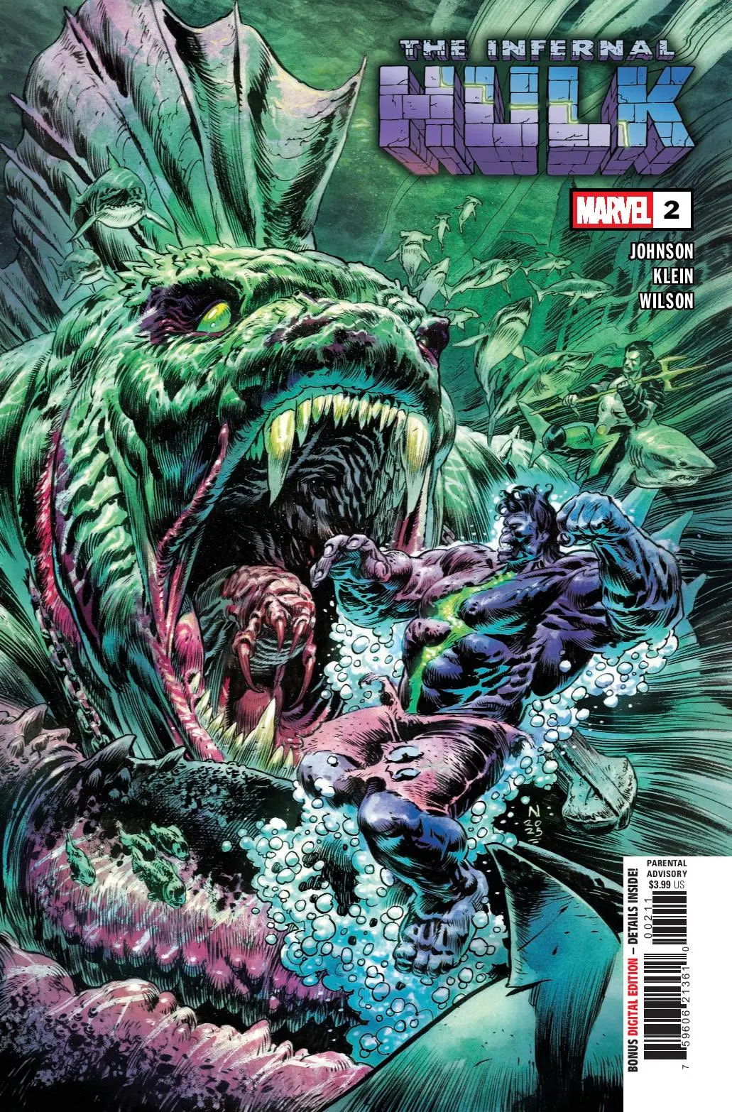 (CA) Nic Klein (VCA) Andrea Sorrentino and Dave Stewart, Alessandro Cappuccio and Neeraj Menon, Leinil Francis Yu and Romulo Fajardo Jr.RULE ALL MONSTERS! The INFERNAL HULK’s conquest of Earth has begun! Hulk turns his eye to ATLANTIS, where an ancient evil has slept for eons awaiting the call of the Mother of Horrors… but will NGATHIIL THE ENDLESS be content to serve Hulk, rather than rule Earth in his mother’s place? Meanwhile, Earth’s Mightiest Heroes frantically scour the Earth for the only one who MIGHT hold the key to victory! Where — if he’s even still alive — is Bruce Banner?