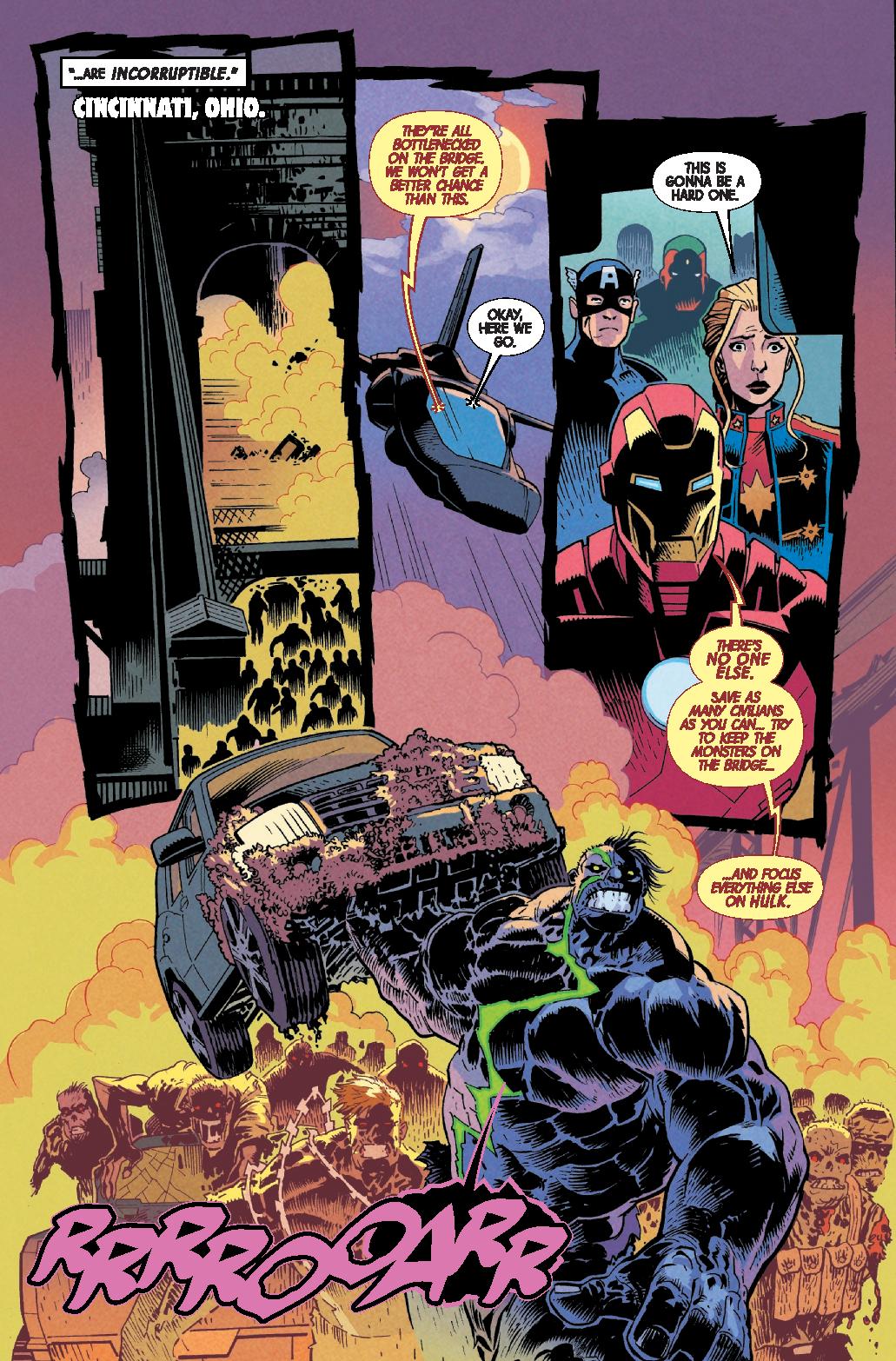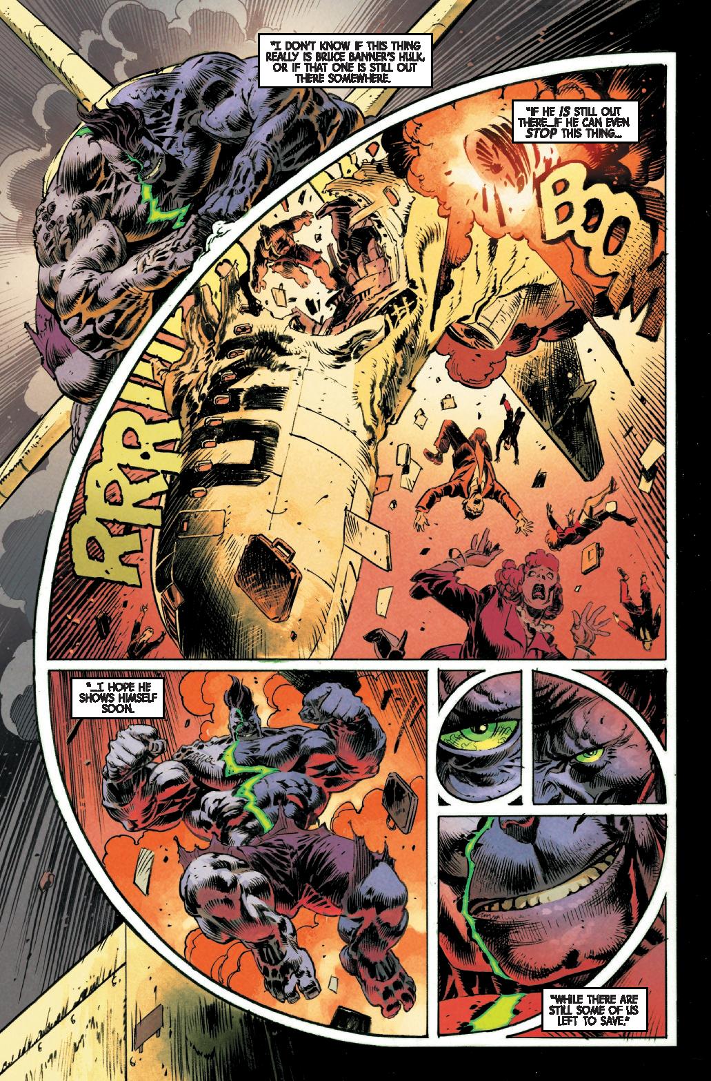 Réussi. Phillip Kennedy Johnson fait encore une parenthèse aux ravages causés par The Eldest avec le corps de Hulk, en plongeant dans le Hulkscape où Hulk avait enfermé Banner et où The Eldest l’a enfermé lui. Il croise un étonnant voyageur et se perd ensuite dans des affrontements avec d’autres Hulks et les autres êtres absorbés par The Eldest, dont The Mother of Horrors hulkifiée. Hulk survit mais comprend qu’il n’est pas et ne peut pas gérer seul.