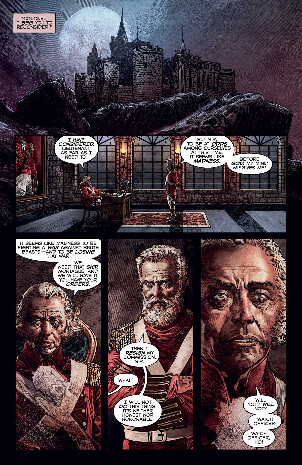 Lieutenant Montague is found guilty of dereliction of duty and clapped in irons, as the Beasts find their way into the castle walls…