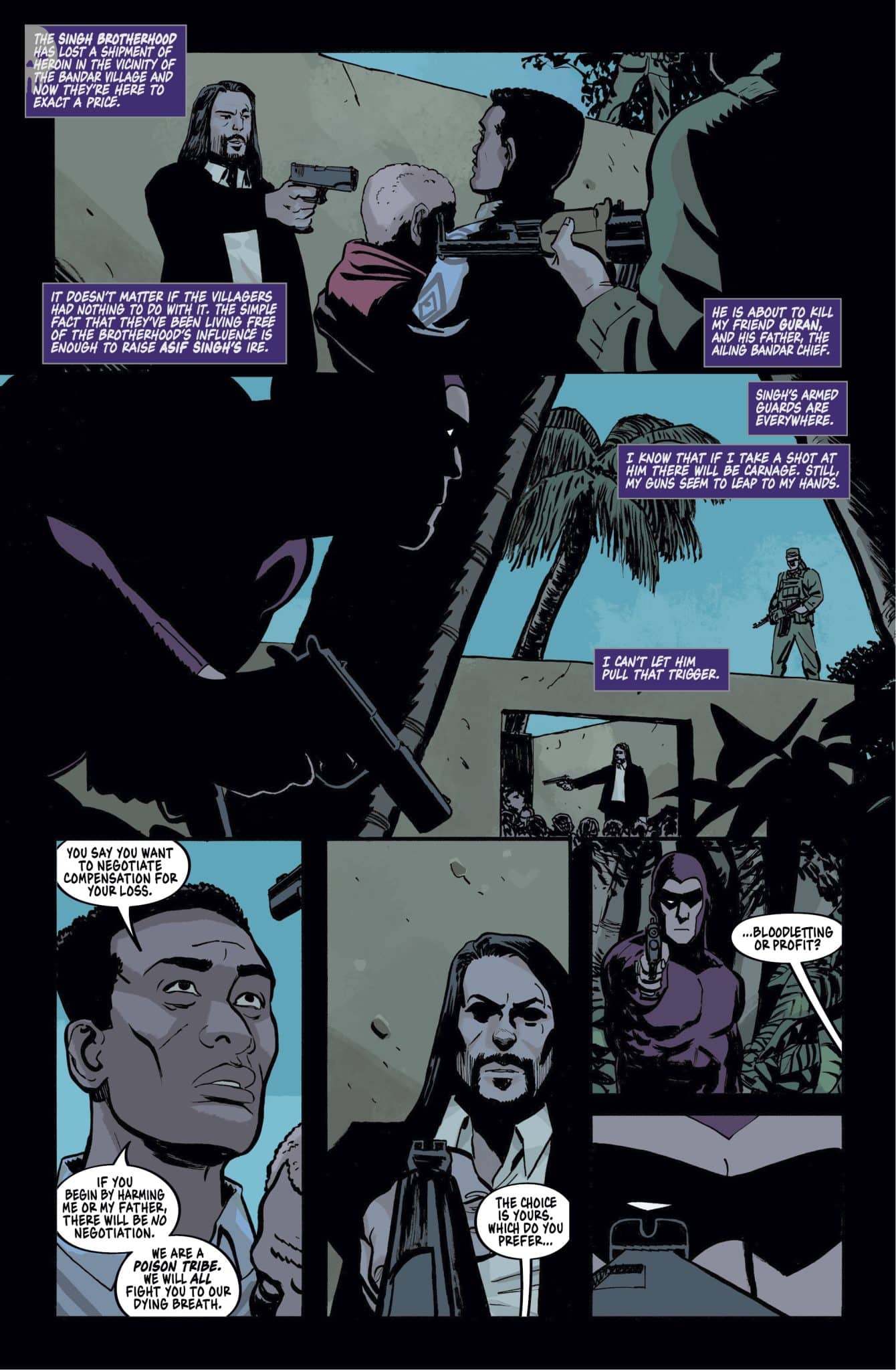 Il arrive au village Bandar quand trois hélicoptères s’y posent, armés mais discrets. Un chef en sort : Asif Singh, la Singh Brotherhood. Tous les Bandars sont rassemblés, Guran fils amène Guran père sur exigence d’un sbire, alors qu’Asif Singh aurait toléré qu’il reste au chaud. Asif Singh demande ce qu’on lui a pris, et envisagera ensuite des accords pour que le village intègre sa communauté.