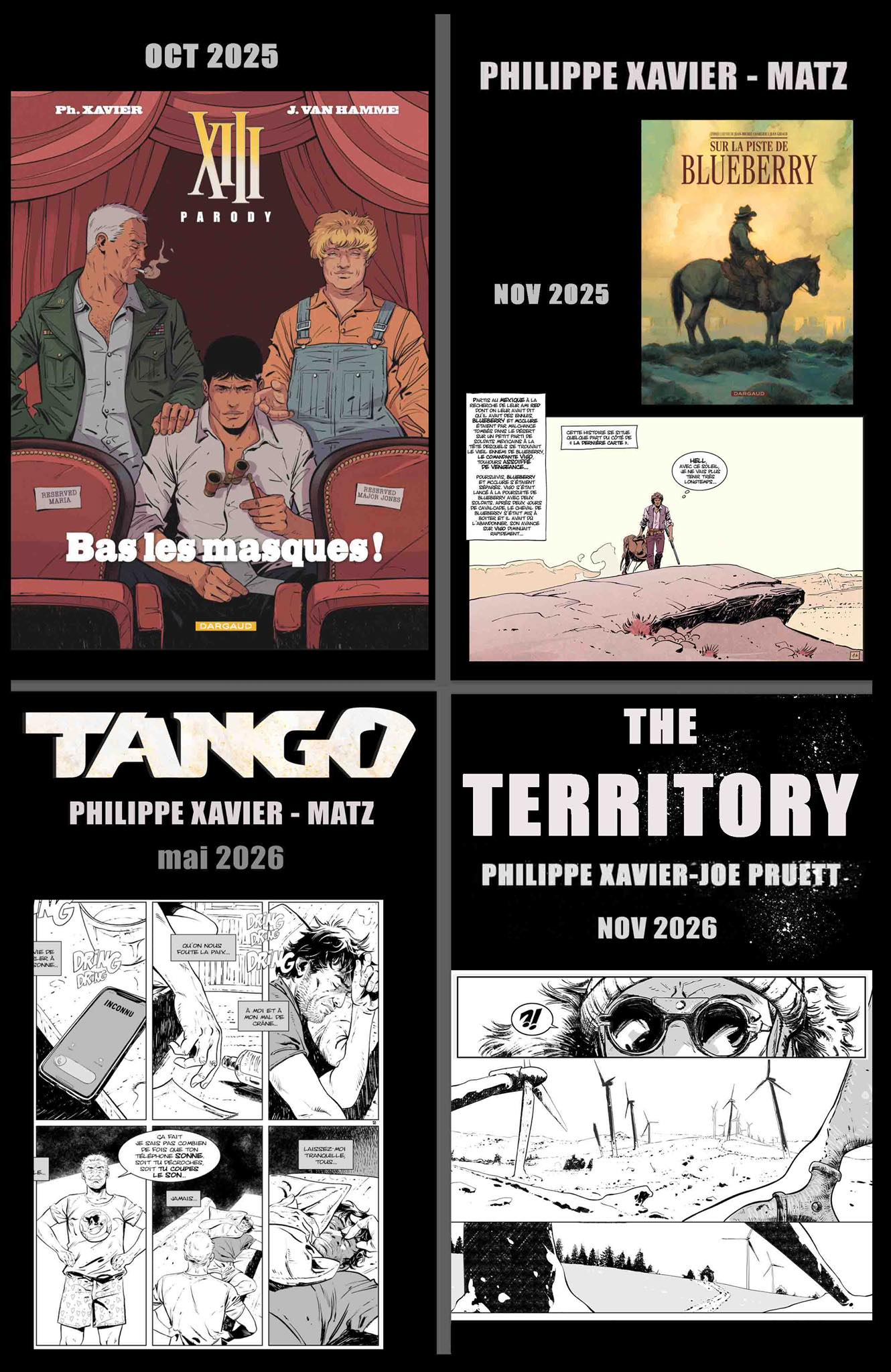 Le prochain album de Philippe Xavier sortira fin 2026 aux Éditions du Lombard. Son titre : The Territory.