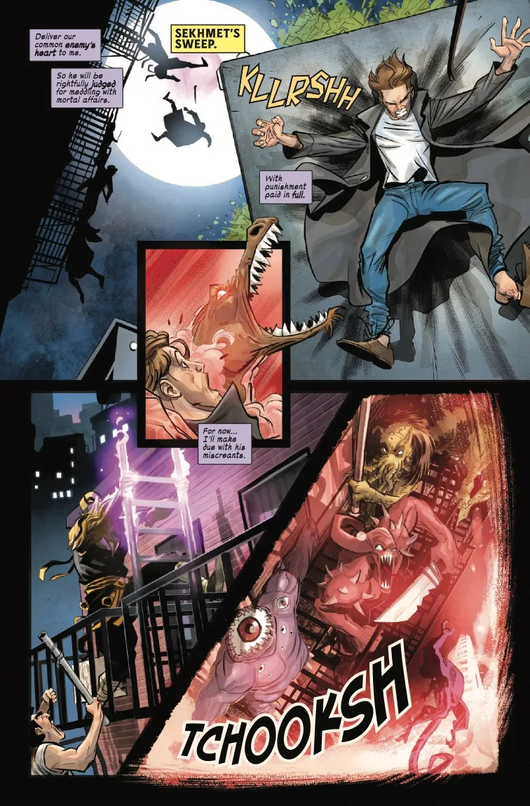 Lancement correct d’une apparente résurrection d’un Danny Rand bien mal traité ces dernières années. Lors du one-shot fêtant les 50 ans du personnage, en août 2024, Danny Rand était assassiné sur manipulation d’un Ch’i Lin, une entité maléfique sombre, mais son bras sortait apparemment de sa tombe par la suite. Ici, Jason Loo reprend la suite après avoir commencé ainsi, et l’on voit bien Danny qui émerge du sol avec un bras en fer, une énergie violette, un masque intégral et une volonté de traquer des Ch’i Lins, des monstres qui possèdent les gens. La population voit ainsi cet Iron Fist étonnant attaquer des « innocents », et Miles Morales s’en mêle, avec bagarre, gêne entre eux tandis que, en parallèle, l’on voit Danny dans le Monde des Morts, où il rencontre Orson Randall prêt à lui dire que « tout ce qu’on nous a dit était faux ».