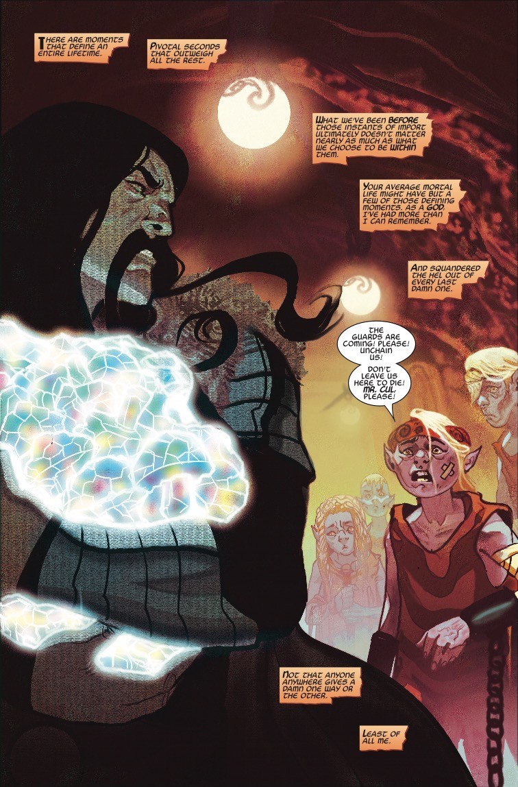 Weeks ago, All-Father Odin sent his brother Cul – the Serpent, the God of Fear, Thor’s backstabbing uncle – into the depths of Malekith’s home realm, Svartalfheim. There lies the Black Bifrost, Malekith’s own corrupted Rainbow Bridge. Cul’s mission is to gather intelligence on the Bifrost, and if he can, destroy it. But will Cul redeem himself at last? Or has the All-Father made another critical mistake in this War of the Realms?