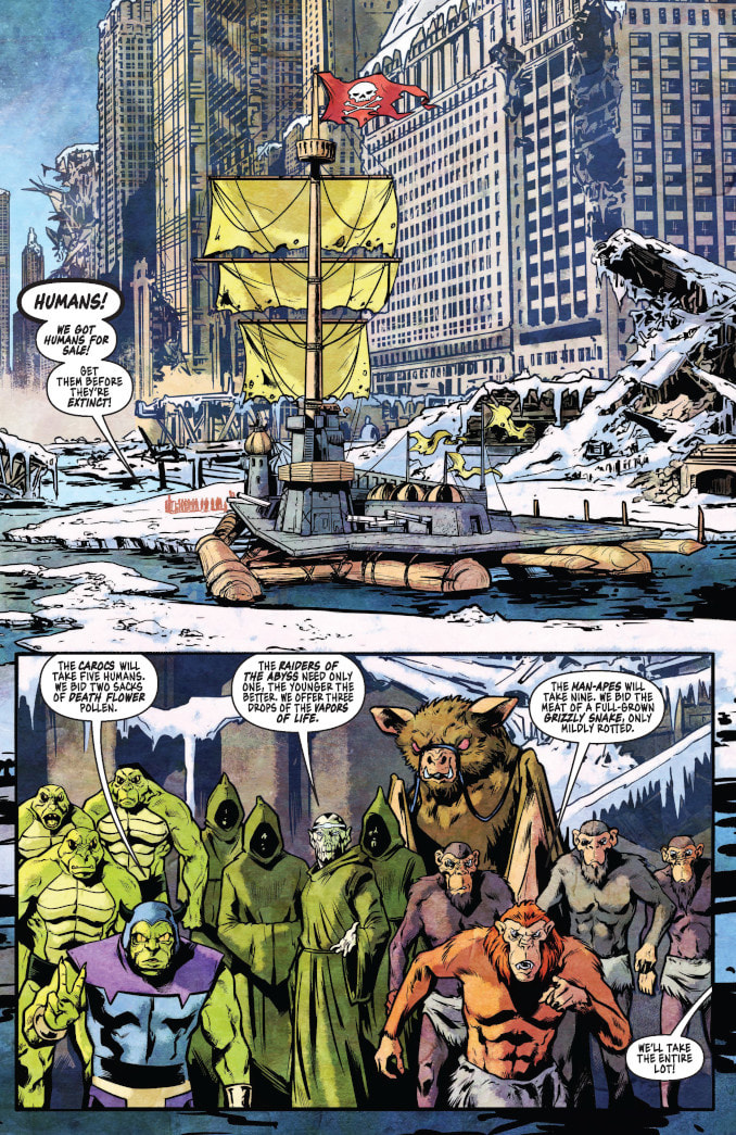 Shockingly in an era where it was common, Thundarr never once featured in its own comic book stories — a fact that stands out even more with its deep pedigree connections to the medium. The King of Comics himself Jack Kirby worked on the production design for the show, establishing its memorable look. He was complemented by Hanna-Barbera/Ruby-Spears icon and « artist’s favorite artist » Alex Toth, who designed key characters. The principal original creator of the show was the enigmatic writer Steve Gerber, known for his satirical and boundary-breaking work in comics like Howard the Duck, Man-Thing, Omega the Unknown, and more. Other comics mainstays like Martin Pasko, Mark Evanier, and Roy Thomas also played key roles in Thundarr’s original tales. And now these connections come full circle, courtesy of one of the biggest names in comics today!