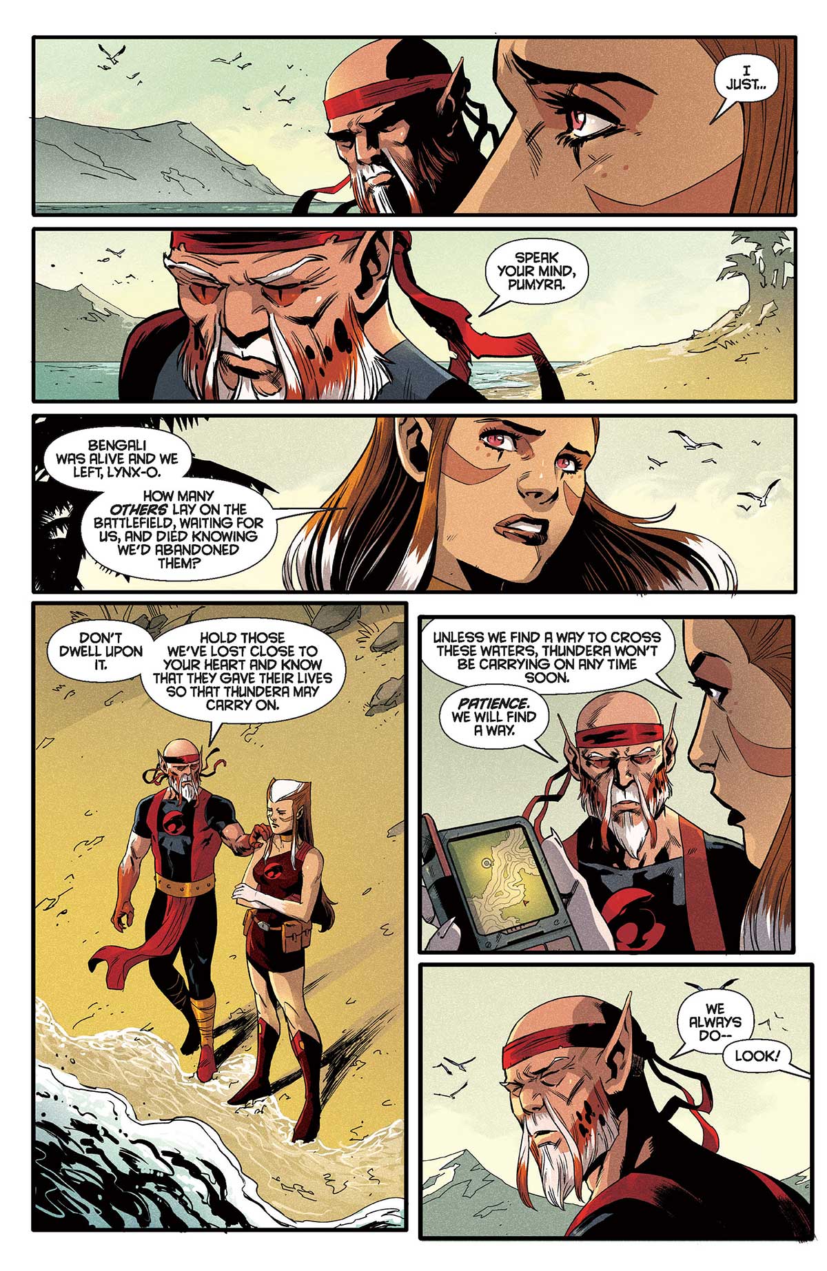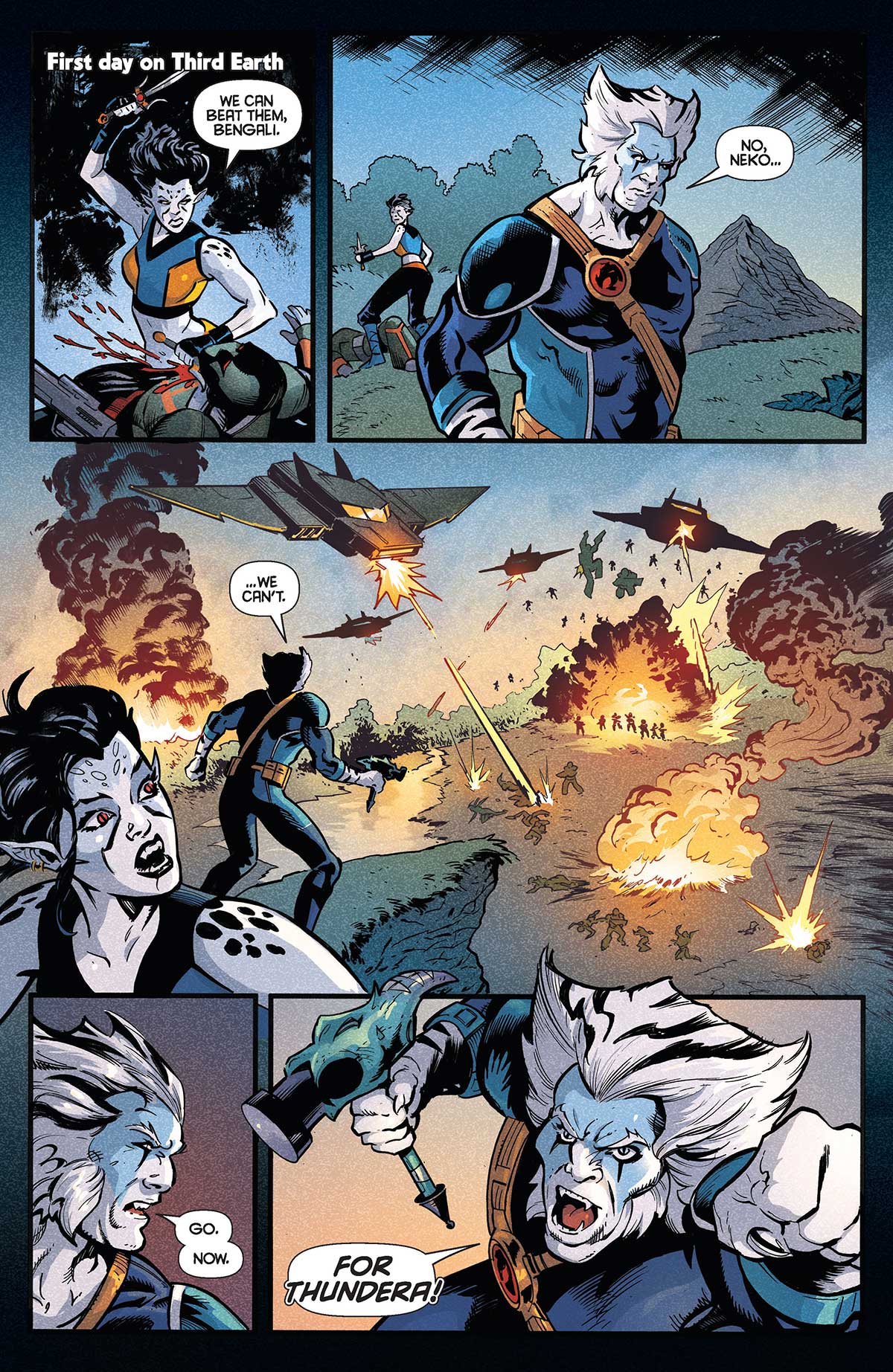 « After being shot down in the middle of a war zone, five Thunderian warriors find themselves lost, on the run, and fighting for their lives. Trapped behind enemy lines and being hunted by a powerful enemy, the ThunderCats: Lost team invites fans into a wholly new outlook on the franchise, and an essential addition to the flagship title ThunderCats and sister series SilverHawks … Some of these cast members were introduced in later seasons and the most ardent fans will be overjoyed to see them spotlighted. Bengali, Pumyra, and Lynx-O are back, and the same beloved characters fans remember, but their origin and connections to the wider lore will be tweaked — now with a role directly tied to the survival of all Thunderians, and connecting to previous releases in the comics. That trio of fan favorites are joined by newly created characters Neko and Ligon, who’re making their first appearances in ThunderCats: Lost #1. Meticulously created by Brisson and Lobosco, the former is a fierce snow leopard, a skilled warrior who tries to solve every problem with violence. Ligon is a gigantic liger, with no need for weapons beyond his fists, but a kind and caring heart.If the main ThunderCats team and series is about the most famous and noble of Thunderan heroes, Lost is about the misfits doing the dirty work and clawing to stay alive. The real question is… will they all survive to tell the tale? »