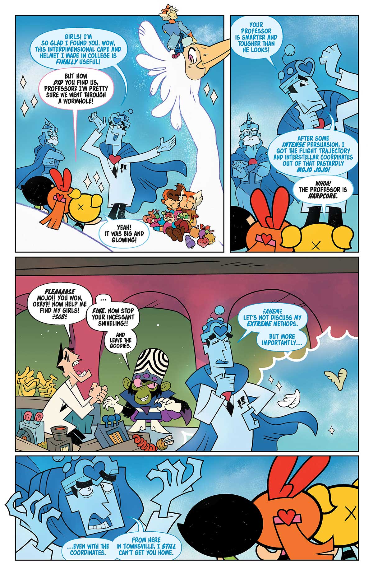 After being transported to Third Earth (where their powers don’t work) by the malicious Mojo Jojo, the Powerpuff Girls have teamed up with locals Snarf and Tygra to try and figure out how to get home to Townsville. But they’ve also discovered that there’s evil afoot in this strange new land — and what kind of heroes would they be if they didn’t stay and help?The Titanic Trio soon discover that things are even weirder on this world than they first appeared. Following an altercation with more crystal-possessed creatures, the girls and their ’Cat companions find themselves following a mysterious signal while riding on the back of a giant Arietta bird. Their ultimate destination has yet to be determined — but knowing this crew, whatever awaits them will be equal parts perilous and adorable!