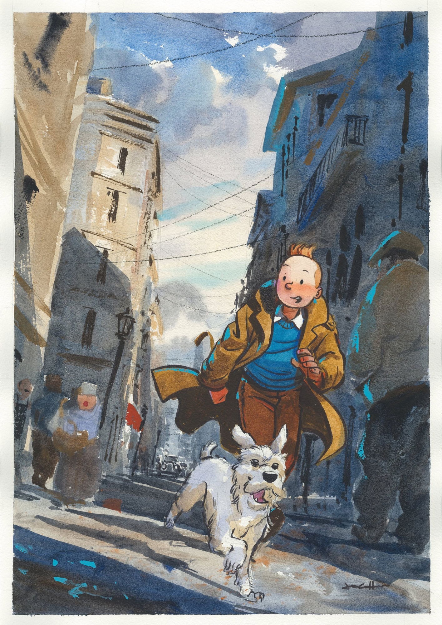 Très bonne question… Je suppose que cela peut s’expliquer pour Tintin par le fait qu’il porte des bottes, mais il est vrai que Milou aurait dû grandir lui aussi.