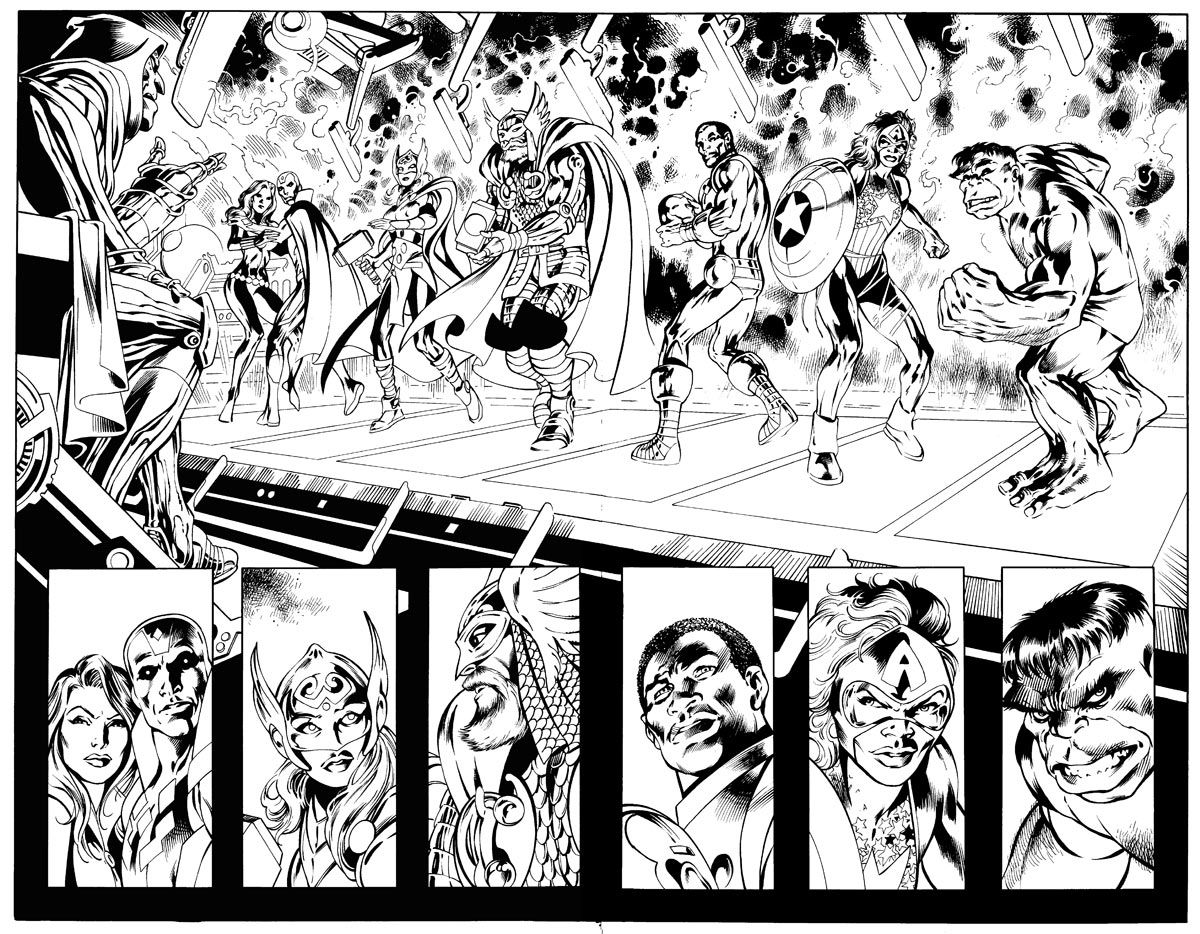 L’équipe comprend la Thor actuelle et le fils d’Odin période Walt Simonson; la Captain America du future (qui s’avère être la fille de Luke Cage et Jessica Jones); la Vision & Black Widow; Hulk; et James Rhodes dans l’armure d’Iron Man.