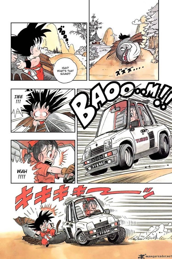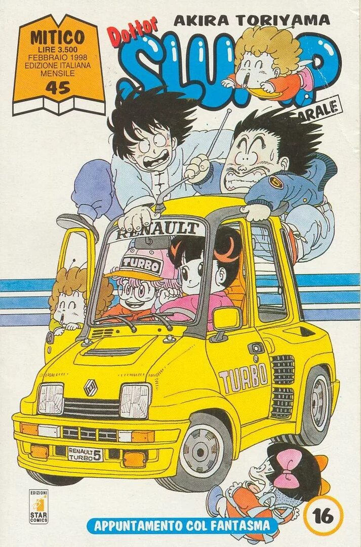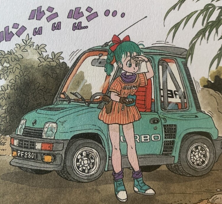 En même temps, c’est le premier véhicule qu’on voit dans DB, dans le premier chapitre, et avec la première apparition de Bulma… Et une Renault 5 Turbo, dans un manga, ça pouvait légitimement marquer (en plus, il y a même le sticker avec le « F » à l’arrière, ce qui tendrait à indiquer que Bulma est Française… Elle vient d’une ville très loin à l’ouest, après tout ..)