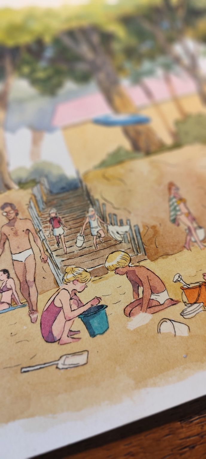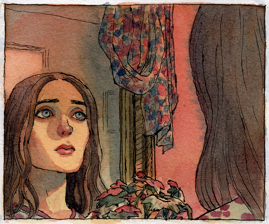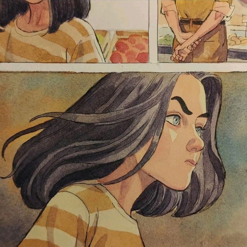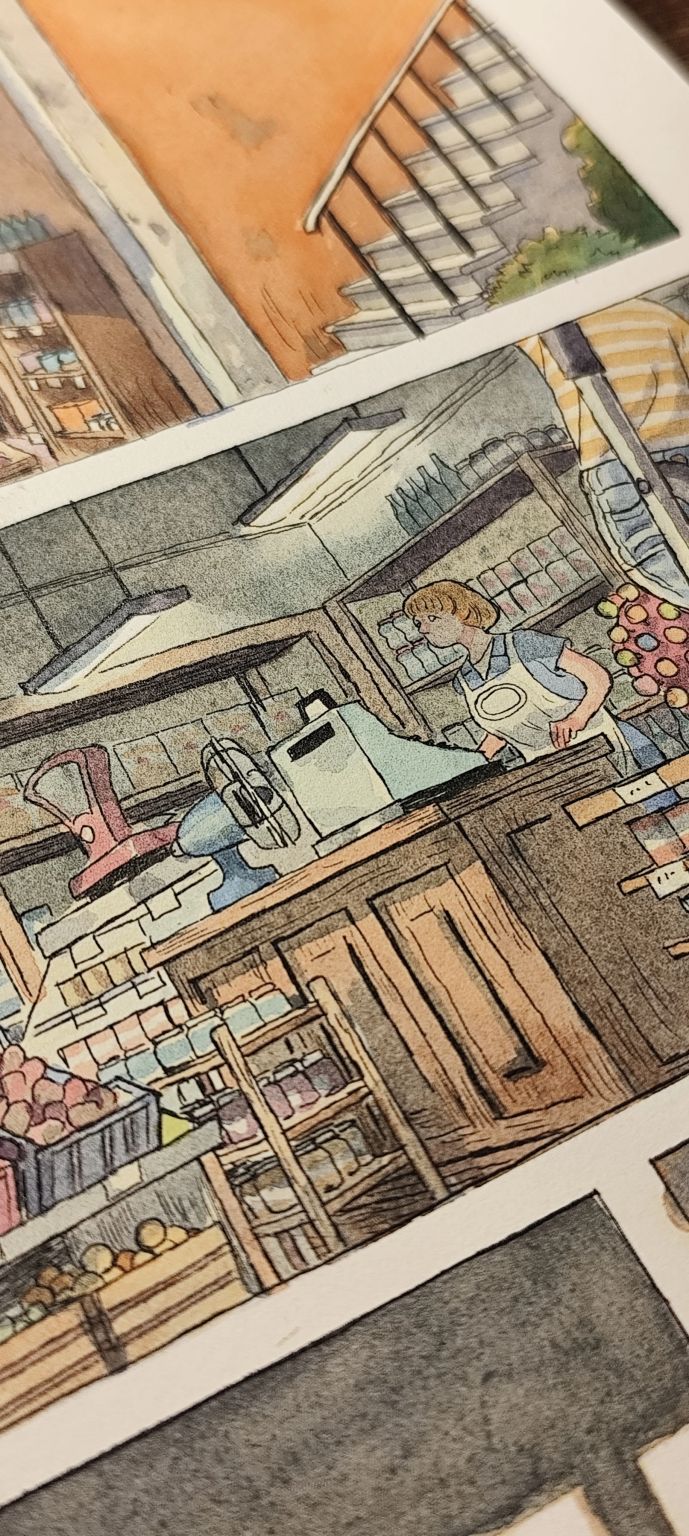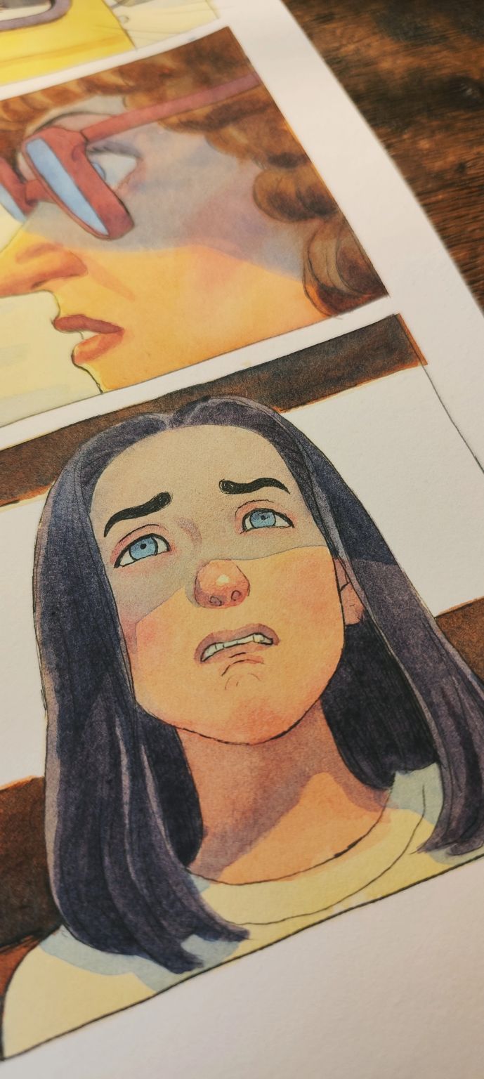 A page from the new graphic novel, it’s a coming if age story talking about love, family and discovering ourselves, starting in the present time, but set in the 80s with a long flashback. Ink and watercolours on paper.