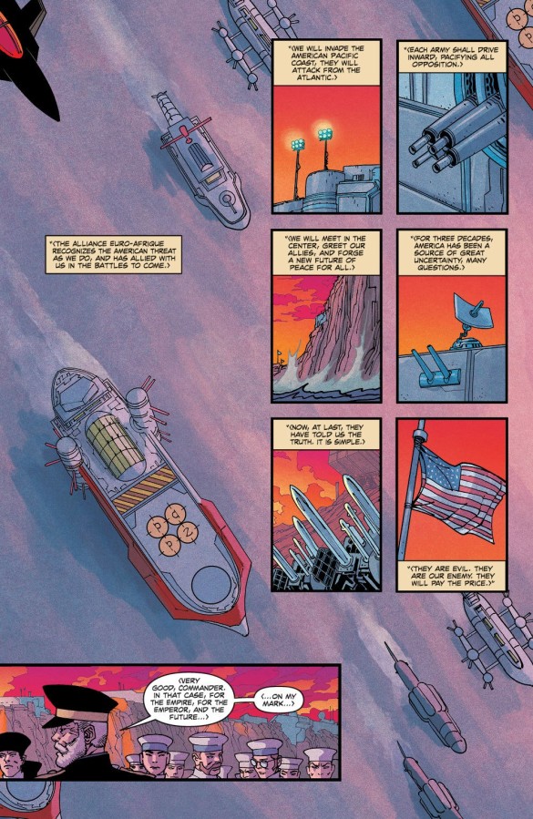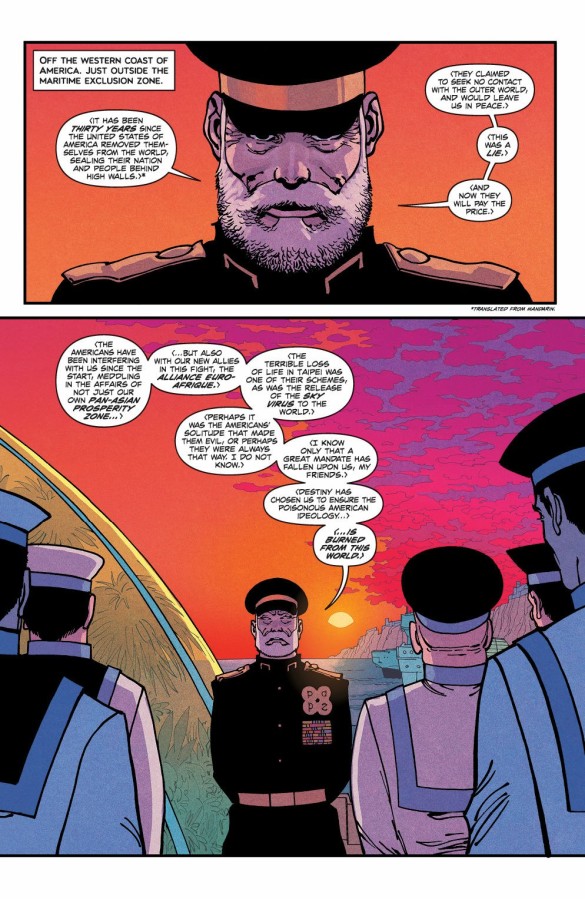 For the last 25 issues, we have explored a deeply altered US from inside its borders. Now, at last, we return to the Outer World to see the incredible events that have taken place while our group of heroes has been lost inside the Undiscovered Country. At least two massive twists that turn the story on its head!