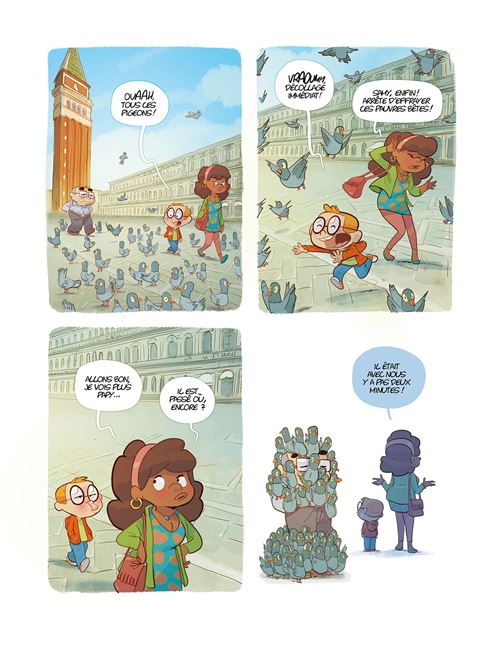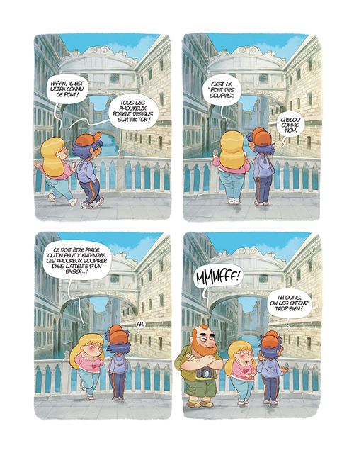 Cette fois c’est à Venise que la famille Bourlingue a décidé de passer une journée inoubliable : visiter le Palais des Doges et voyager sur le Grand Canal à bord d’un vaporetto. Mais la famille est accompagnée du petit copain de Julie, au grand agacement du père… Entre anecdotes historiques et visites des lieux iconiques, ils découvrent les trésors de la ville avec un point de vue plein de malice et de d’humour.