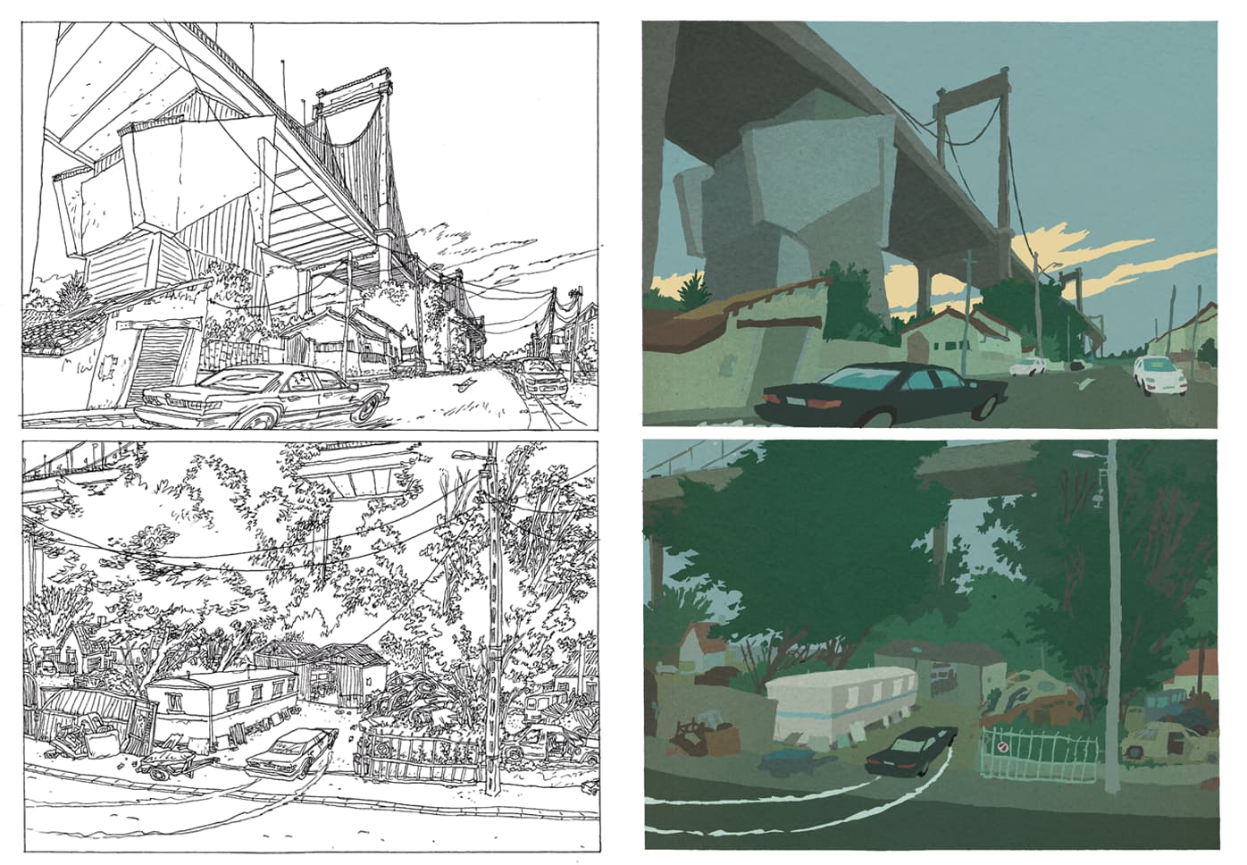 Ce sont les premières pages que l’on m’envoie, avant que le livre ne démarre et que le style graphique de l’auteur ne soit définitivement posé.