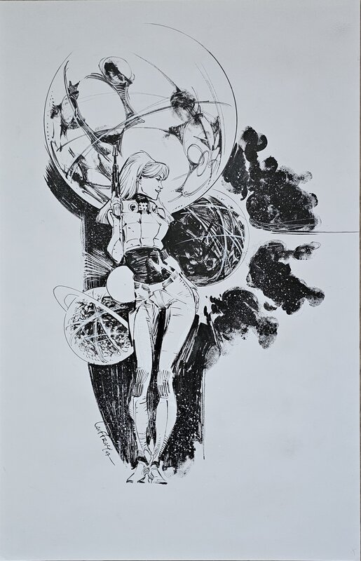Bon, le dessin est certes moins serieux… Valerian « Shingoozlooze », mon unique irruption dans le monde de la comédie SF avec le formidable Wilfrid Lupano … Mais c’est pour l’exemple. Voilà donc l’encrage fait sur papier plus lisse. Le pinceau file sur la surface, on a deux fois plus (au moins) d’autonomie… Notez les gros traits de pinceaux, case 1 à gauche, à l’arrière du crane du robot… Et bien ca file tout doux… Sur le papier à grain, ca aurait fait du rapeux… Bref… Demain je vous montrerai un gros plan sur même surface mais en plus « gestuel ». Bon, si ca ne vous intéresse pas, vous me le dites