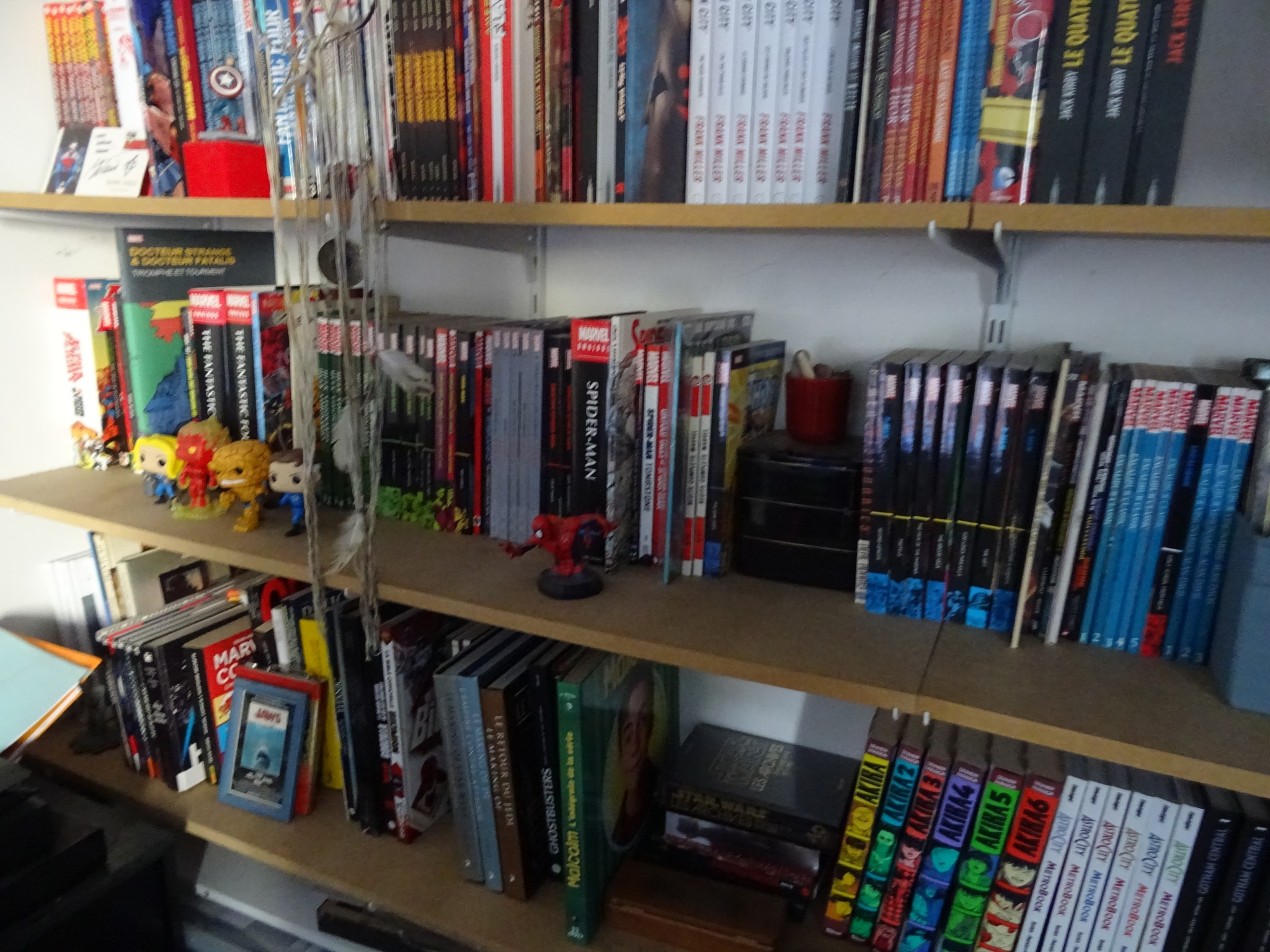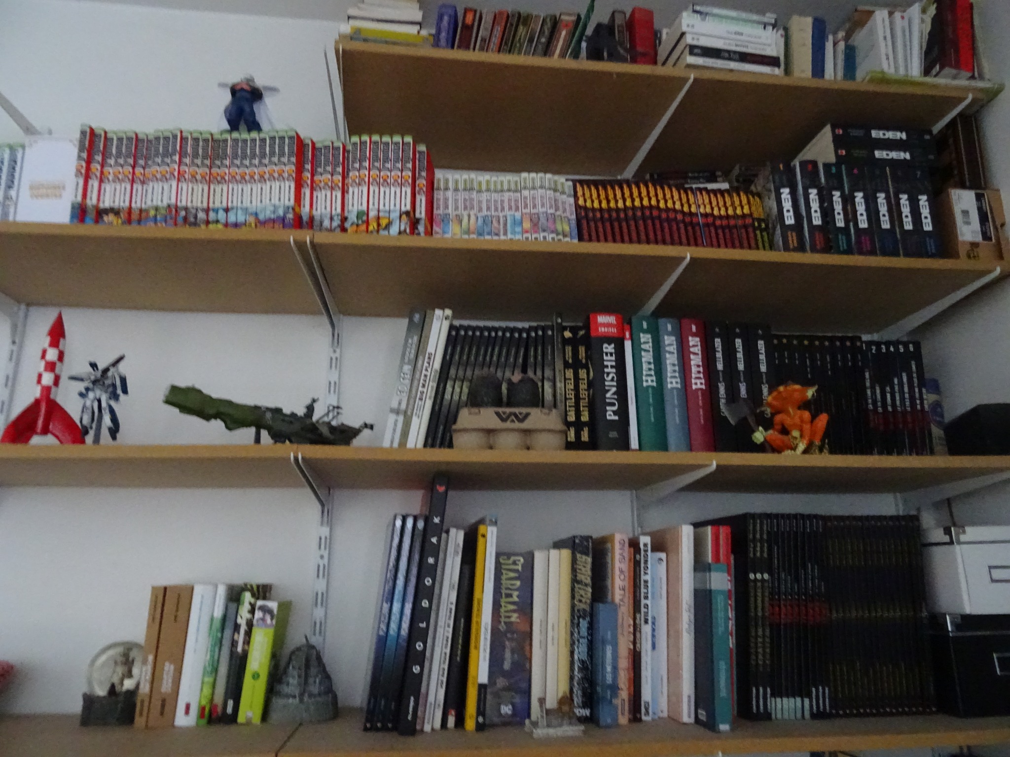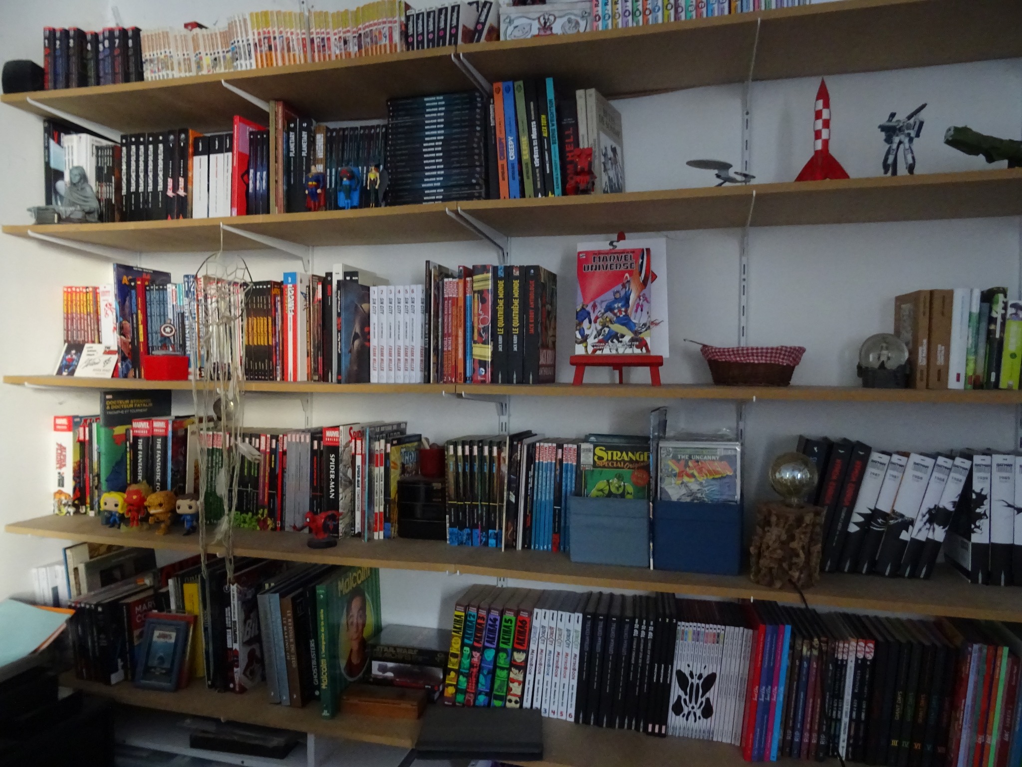 Les mangas ensemble, les séries complètes (ou presque) aussi, on stocke les livres ciné/bd/série/musique/jeu/peinture ailleurs et on fait des coins pour Garth Ennis, Walter Simonson, Mark Waid, Frank Miller et Eric Powell et